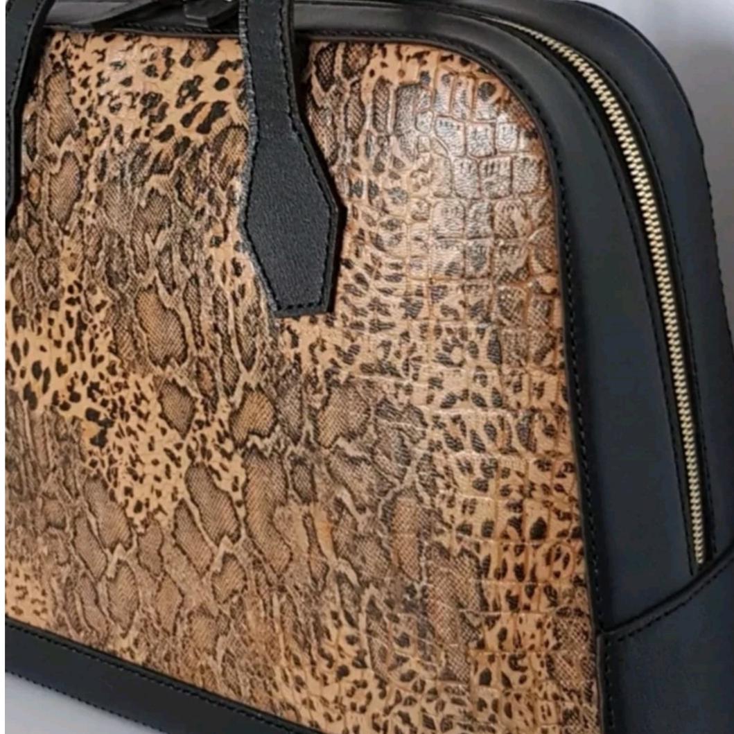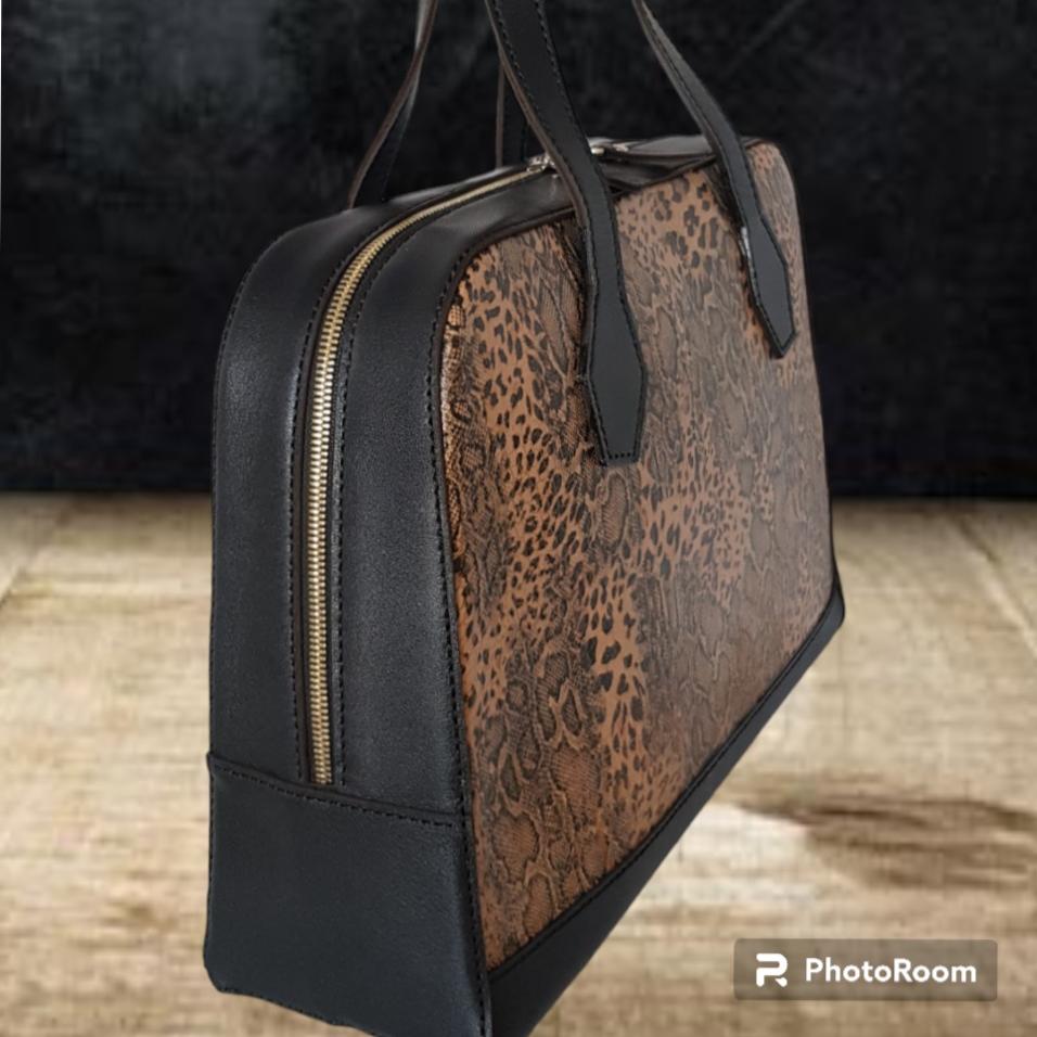 کیف رودوشی زنانه ، مجلسی ، کاملا دست دوز ، ساخته شده از چرم طبیعی گاوی ، چرم تبریز ، ترکیب زیبای چرم گاوی پلنگی و چرم مشکی