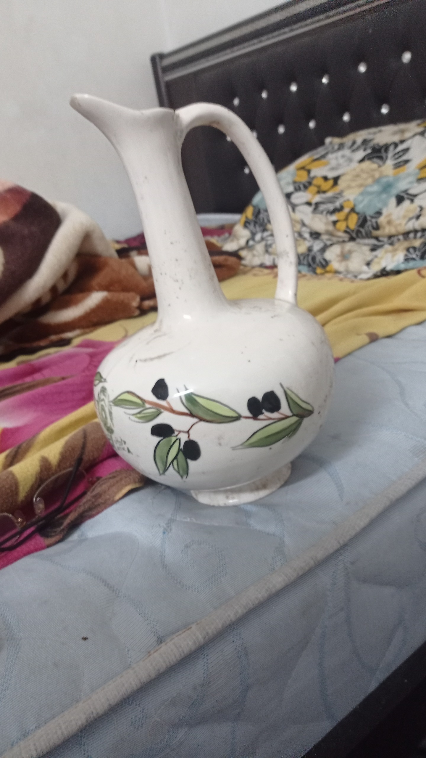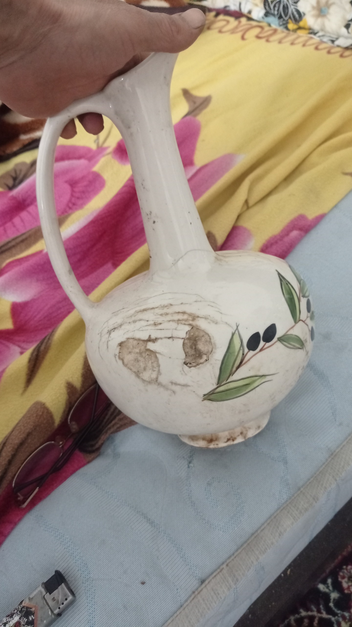 پارچ سرامیکی شاید چینی باشه قدیمی فقط توی عکس مشخص هست کمی ضربه خورده یک طرفش