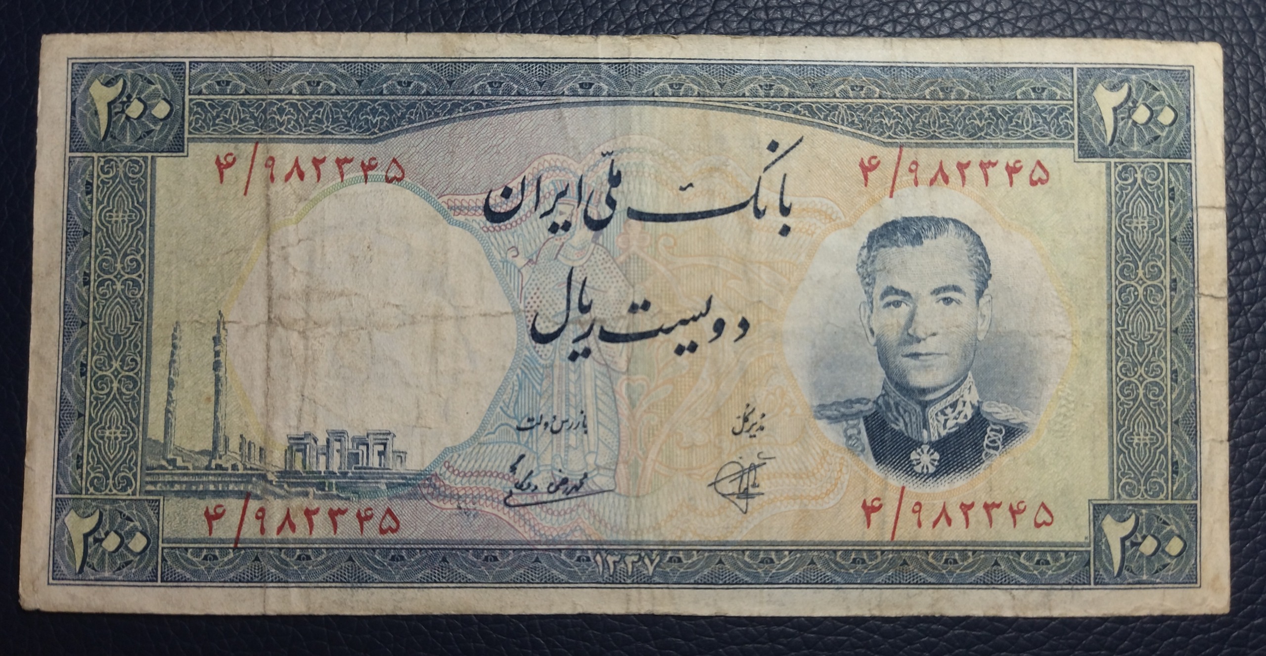 مطابق تصویر اسکناس 200 ریال سری هفتم بانک ملی 1337 معروف به پشت فرودگاهی کیفیت بکر ضخیم و بسیار عالی شماره قشنگ