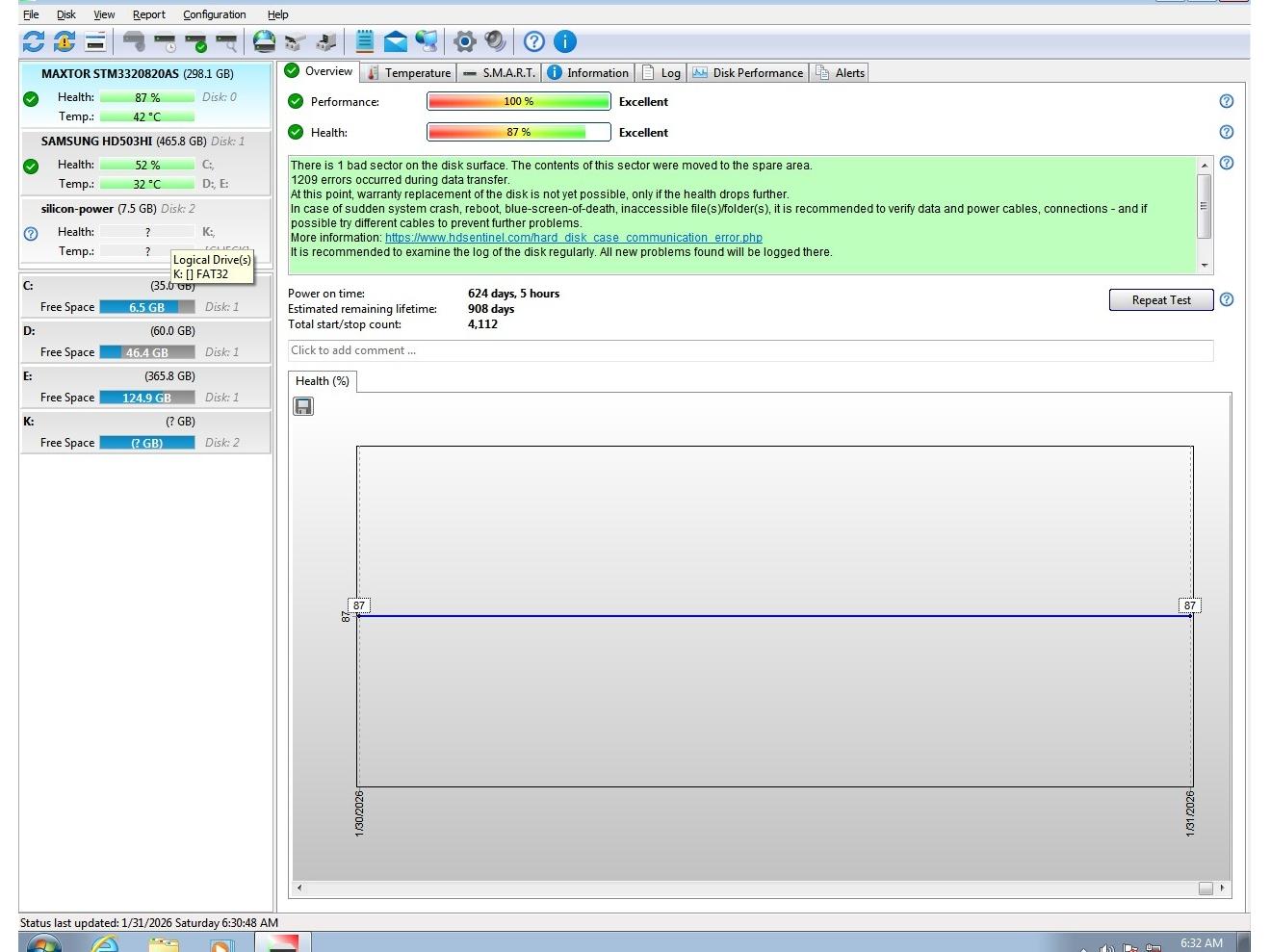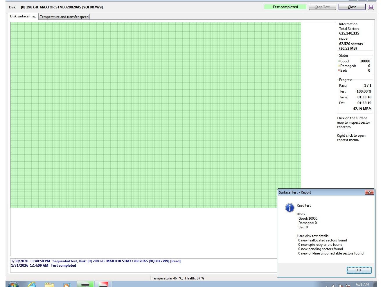 هارد Maxtor STM3320820AS 320GB سلامت 87 درصد SATA