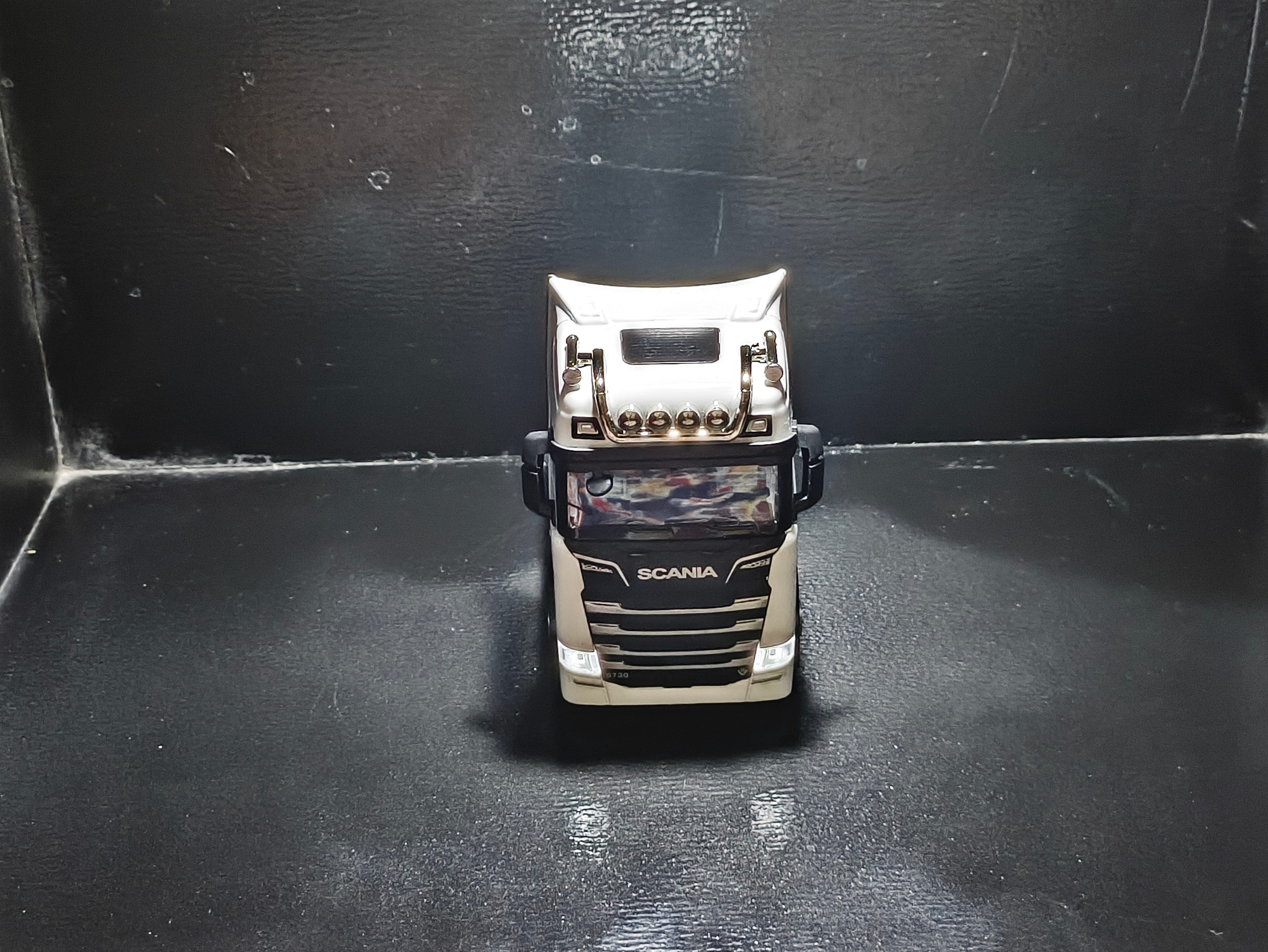 ماکت ماشین فلزی تریلی اسکانیا موزیکال و چراغدار و عقب کش، کیفیت عالی رنگ سفید، این محصول آماده ارسال است، خرید عمده یک هفته طول میکشد.