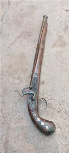 تپانچه دست ساز دکوری کلکسیونی ساخته شده از چوب درخت گردو چخماق و ماشه کار میکنه ولی قابلیت شلیک نداره مناسب دکور