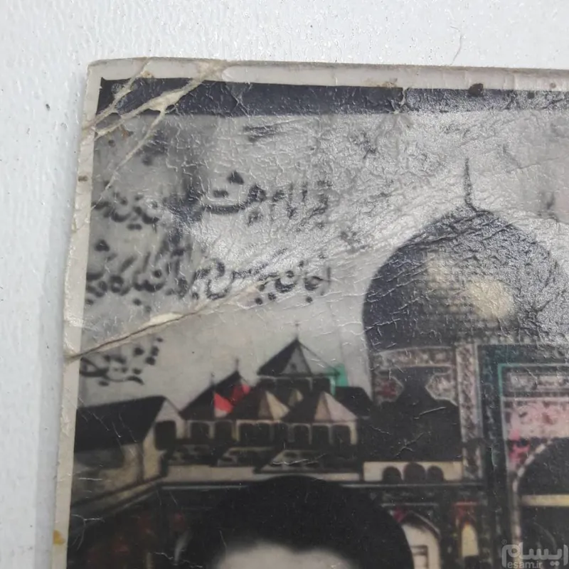 ابعاد 13و نیم در 8 و نیم سانتی متر . دو جای عکس پارگی داره و بعضی جاهای عکس بدلیل قدمت بالا ترک برداشته .. این عکس مربوط به دوره احمد شاه قاجار است ک در مشهد از زائرین امام رضا برداشته شده .. به یک فرد از عکاسان قدیم مشهد نشون دادم با اطمینان گفت پشت ضمیمه این عکس مربوط به دوره احمد شاه قاجار است و این عکس از اولین عکسهایی است ک با پشت ضمیمه تصویر حرم امام رضا(ع) در مشهد گرفته شده است با قدمتی بالای 110 سال . پشت عکس دست نوشته ای داره ک متاسفانه تاریخ آن بیان نشده.