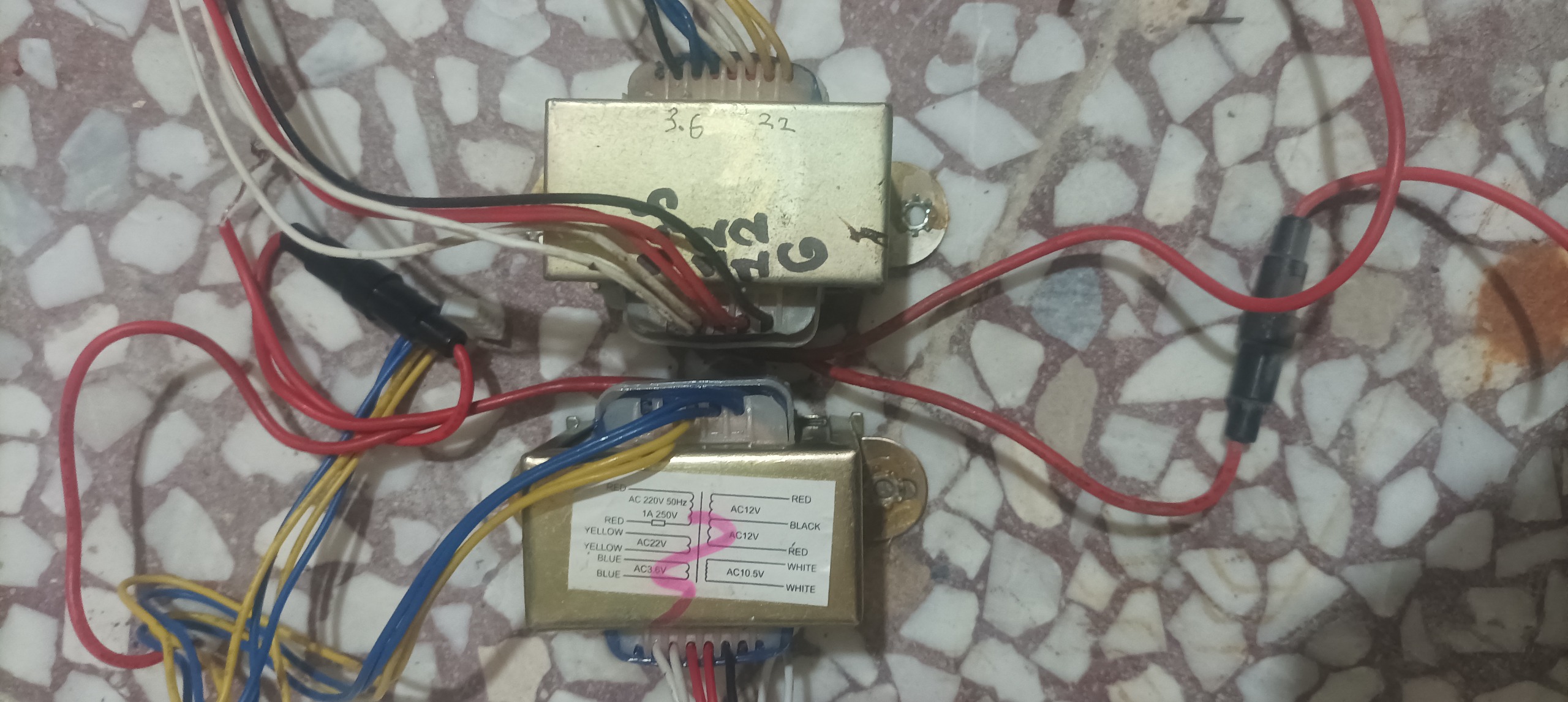 دو عدد ترانسفورماتور کاهنده ولتاژ با ولتاژ های متفاوت.