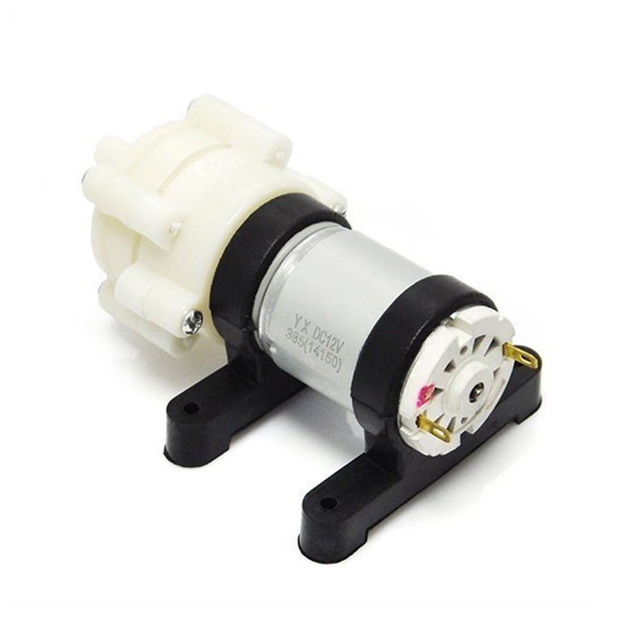 پمپ آب دیافراگمی که دارای ولتاژ کاری 6-12 ولت است و پرتاب آبی معادل 3 متر دارد. این پمپ دارای صدای متوسطی است تقریبا 45 دسیبل صدای کارکرد آن است شما از این پمپ میتوانید برای خنک کردن بورد های الکترونیکی در سیستم های و یا سیستم هایی که به پمپاژ آب در محدوده 3 تا 2 لیتر بر دقیقه نیاز دارند استفاده کنید .سیستم کارکرد این پمپ بصورت دیافراگمی هست که میتواند آب را از ارتفاع 1 الی 2 متری مکش کرده و انتقال دهد.بست سیلیکون سیاه رنگ جهت پیچ کردن و ثلبت نگه داشتن پمپ و جلوگیری از لرزش پمپ استفاده میشود. این پمپ آب به طور عمده در مدل آزمایشی ، استخر بادی ، شستشوی ماشین ، آبیاری ، زمان پر شدن آب معدنی و غیره استفاده می شود.