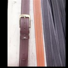 جنس این کمربندها چرم طبیعی درجه 1 گاوی میباشد با ضخامت 4/3میلیمتر و سگک های اسپورت دودی در رنگ های مشکی و برنجی برای سایزهای 48 تا 56
