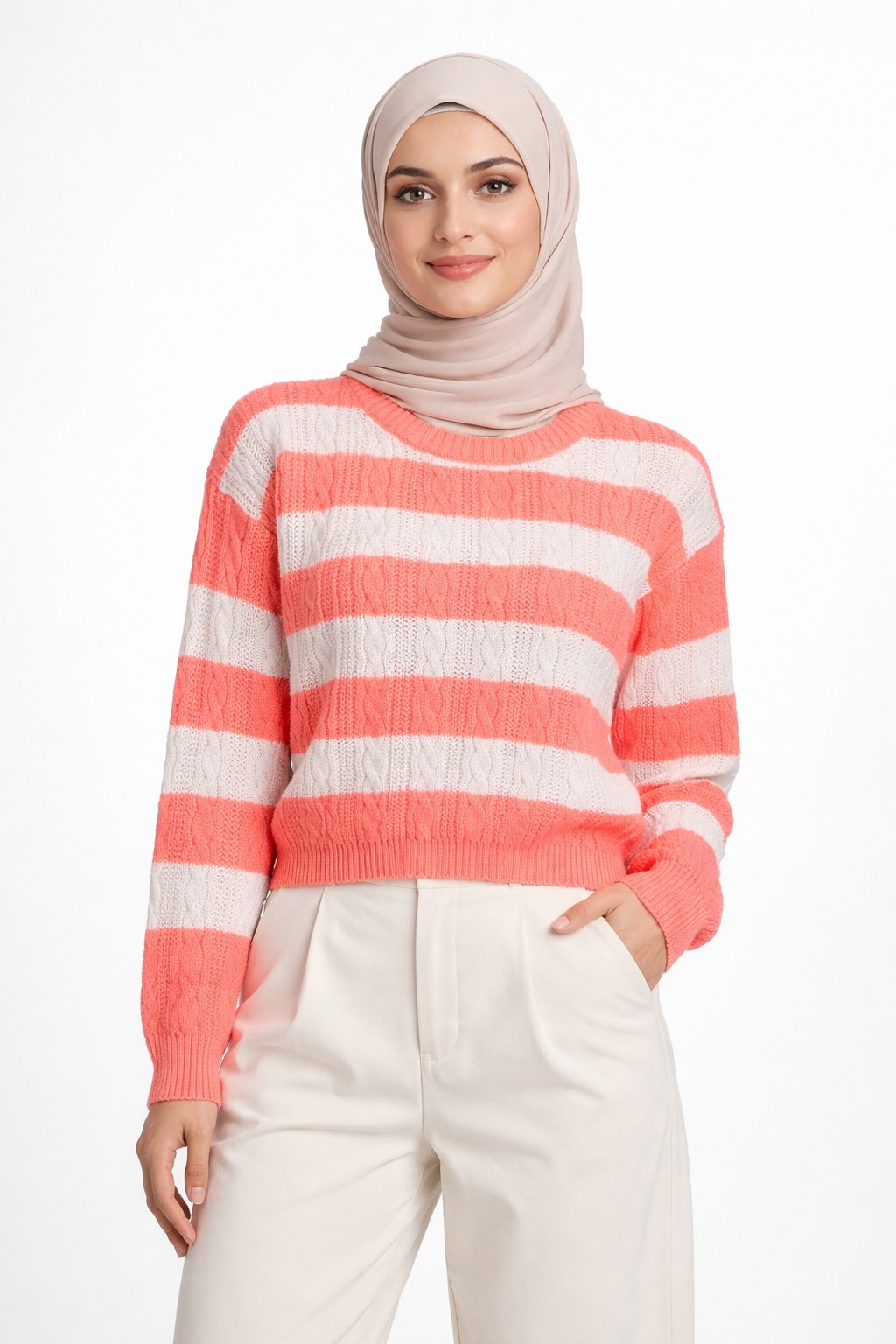 بافت زنانه راه راه صورتی سفید