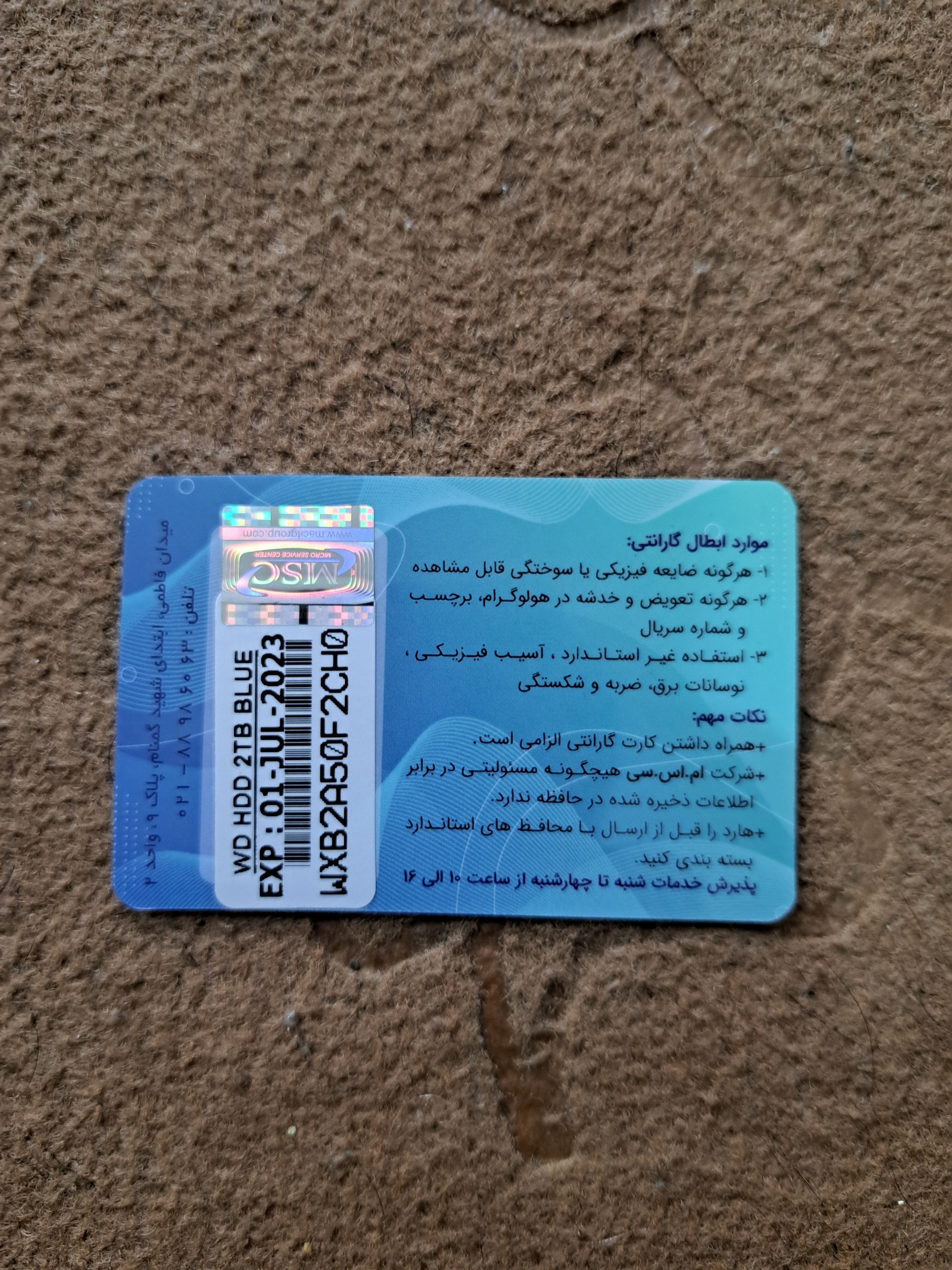 کارت گارانتی هم همراهشه اما اعتبارش تا 2023 بوده