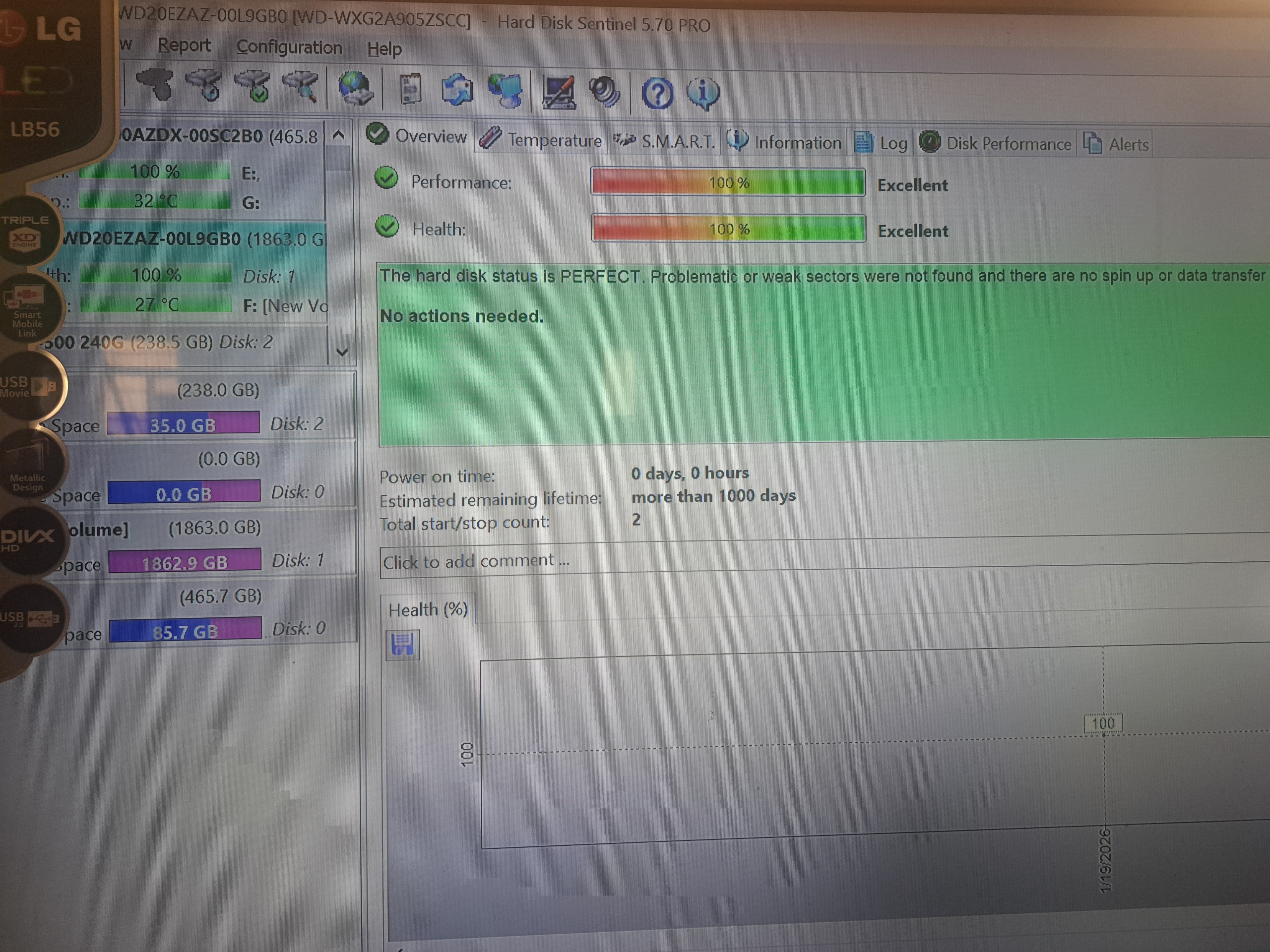 تست کارکردشم گذاشتم ک ببینید سلامت 100 و کارکرد هارد 0 بوده