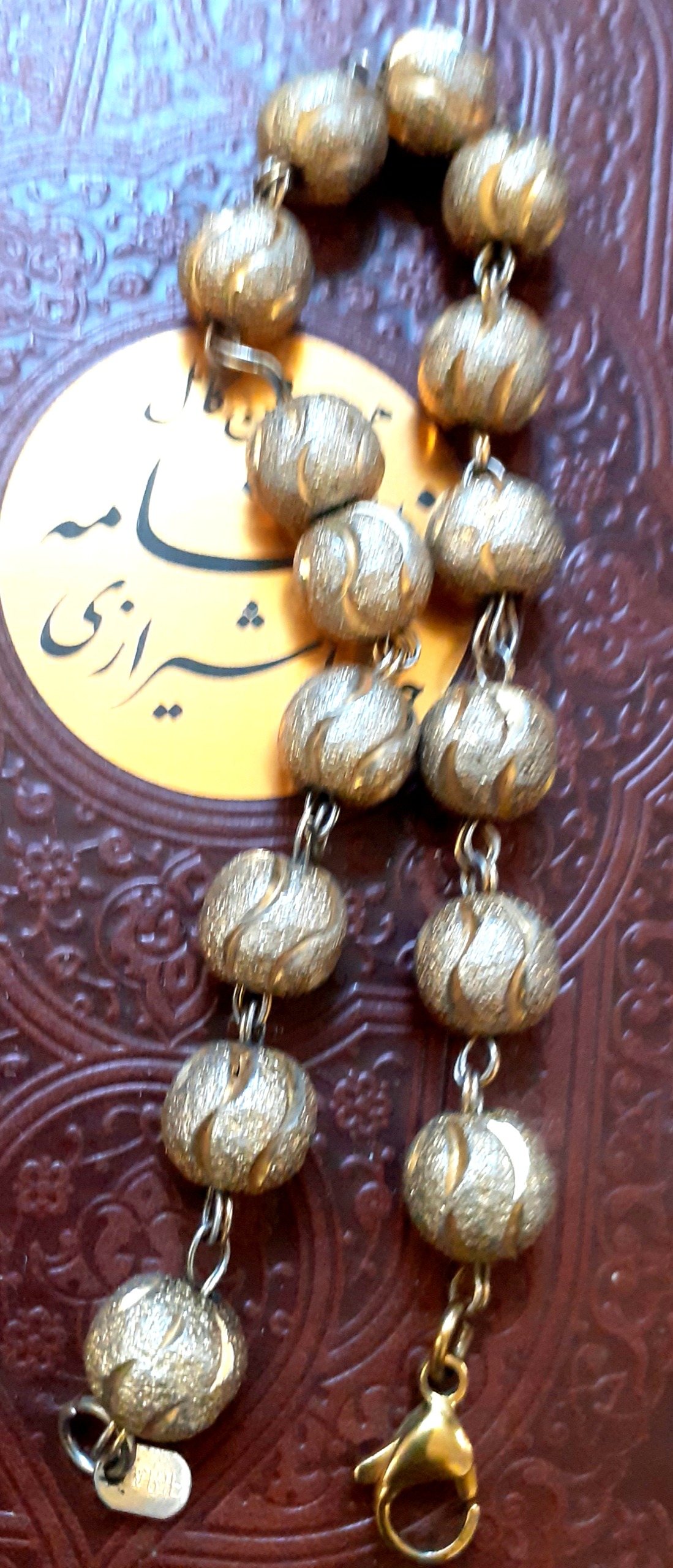 دستبند زیبای مجلسی شیک مهره برنجی قدیمی مارکدار
