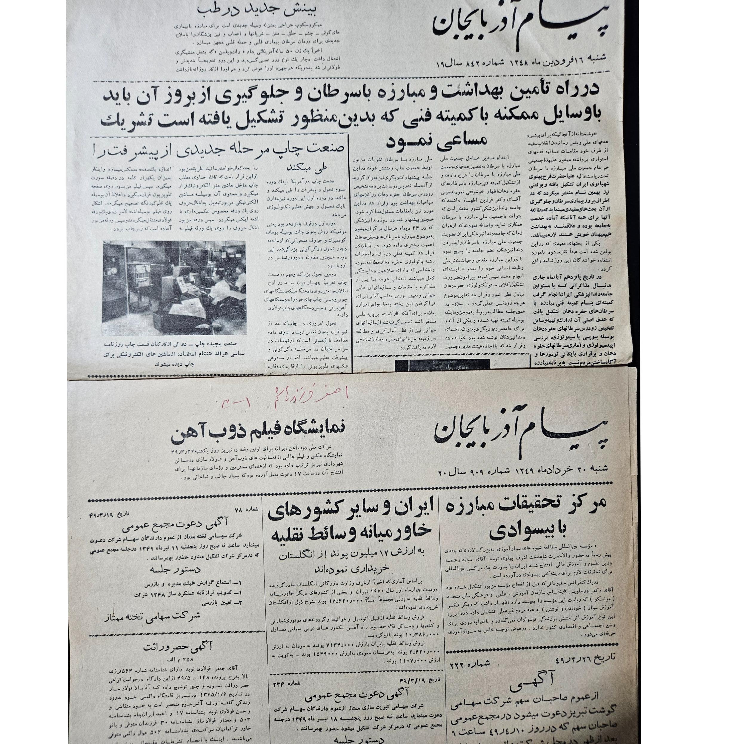 دو شماره روزنامه پیام آذربایجان سال 1348
