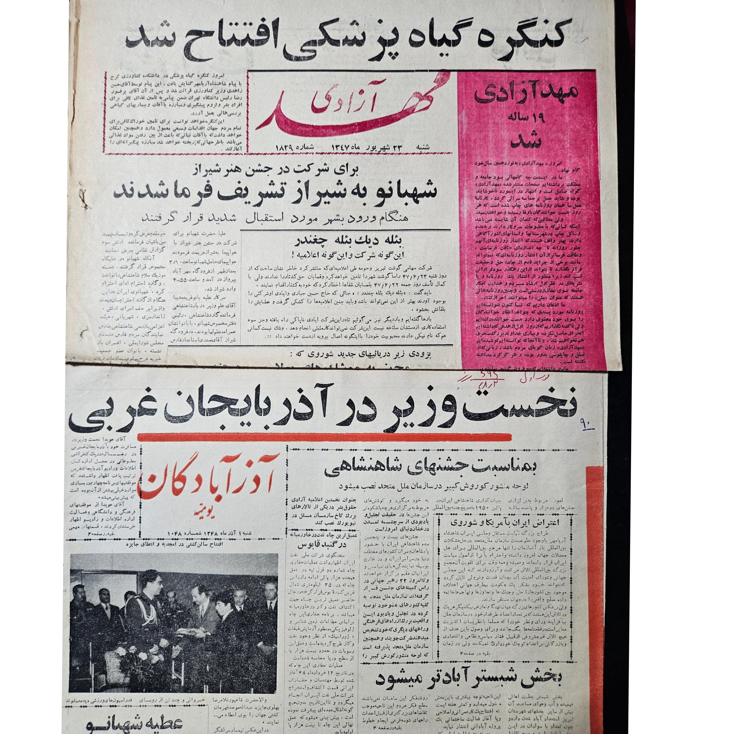 دو شماره روزنامه آذرآبادگان و مهد آزادی 1348