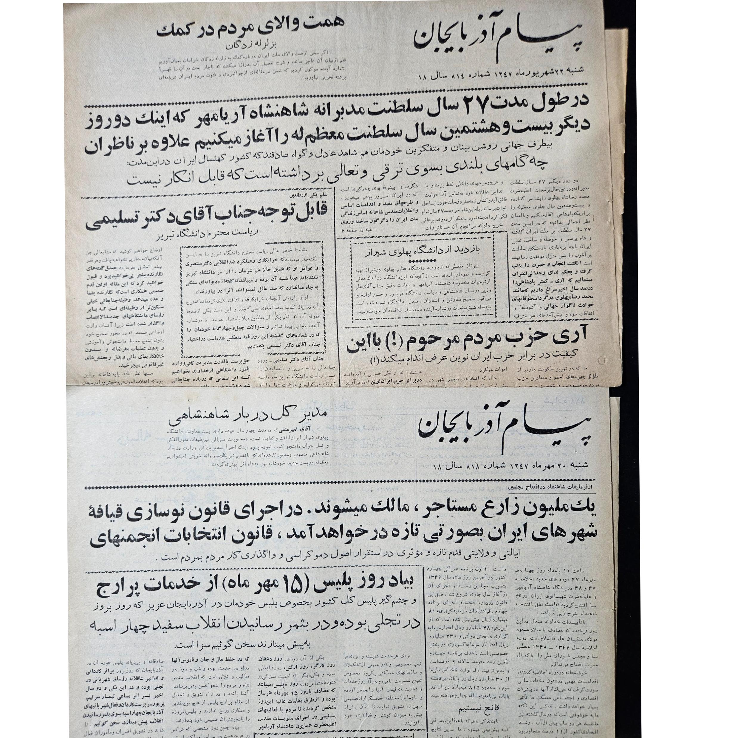 دو شماره روزنامه پیام آذربایجان سال 1347