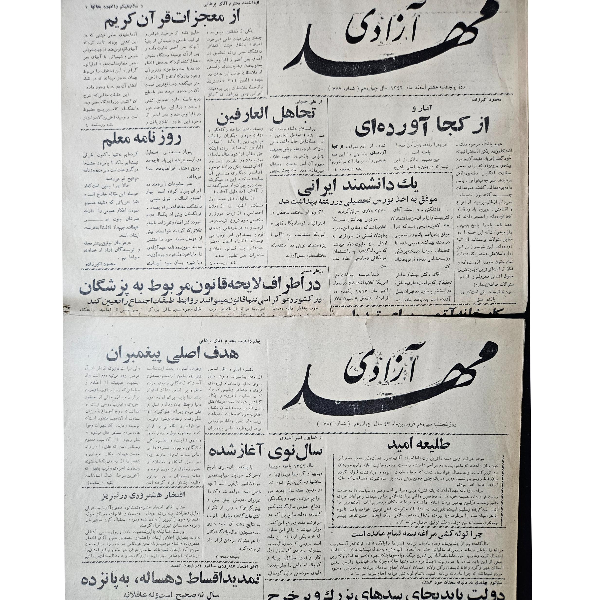 دو شماره روزنامه مهد آزادی سال 1343