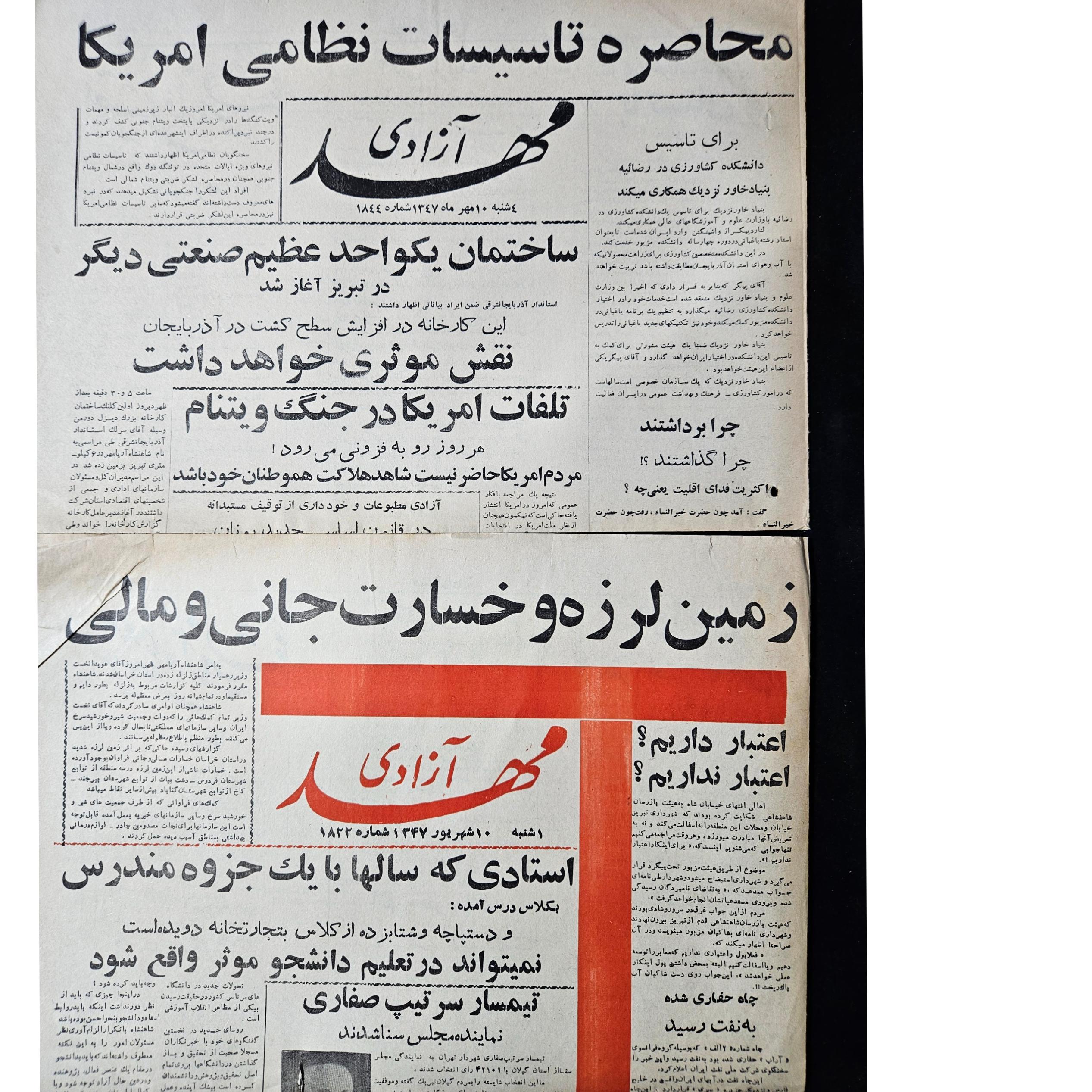 دو شماره روزنامه مهد آزادی سال 1347