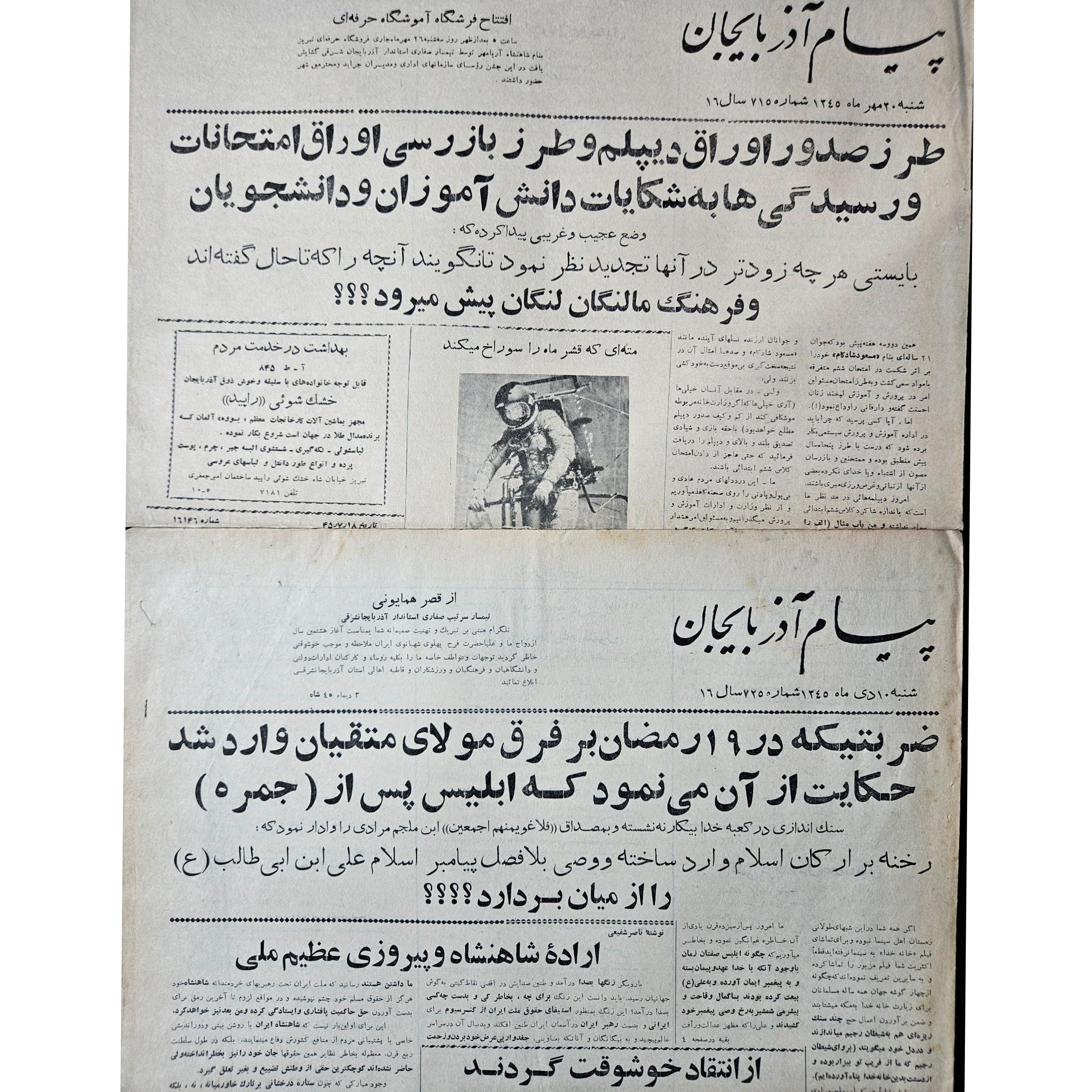 دو شماره روزنامه پیام آذربایجان سال 1345