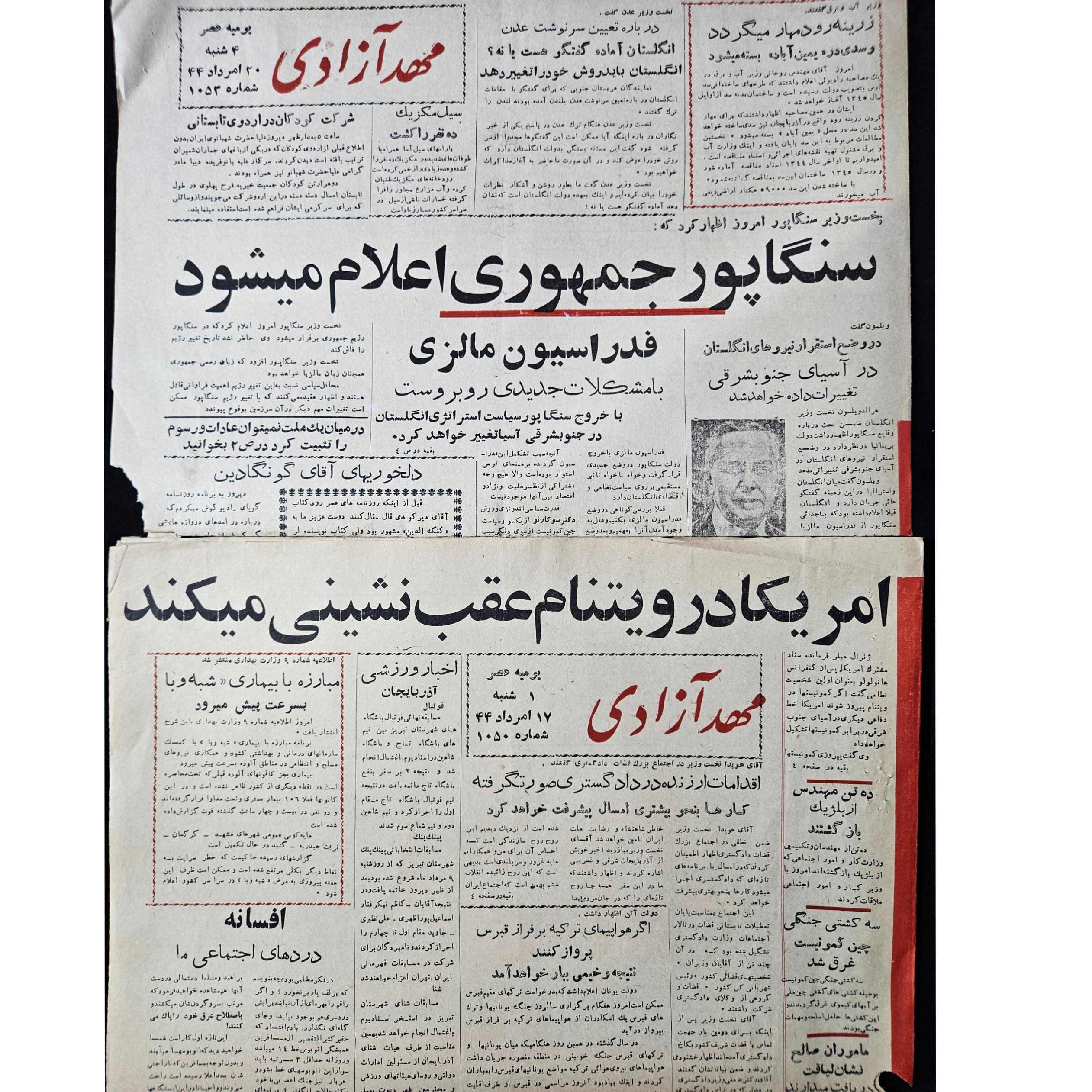 دو شماره روزنامه مهد آزادی سال 1344