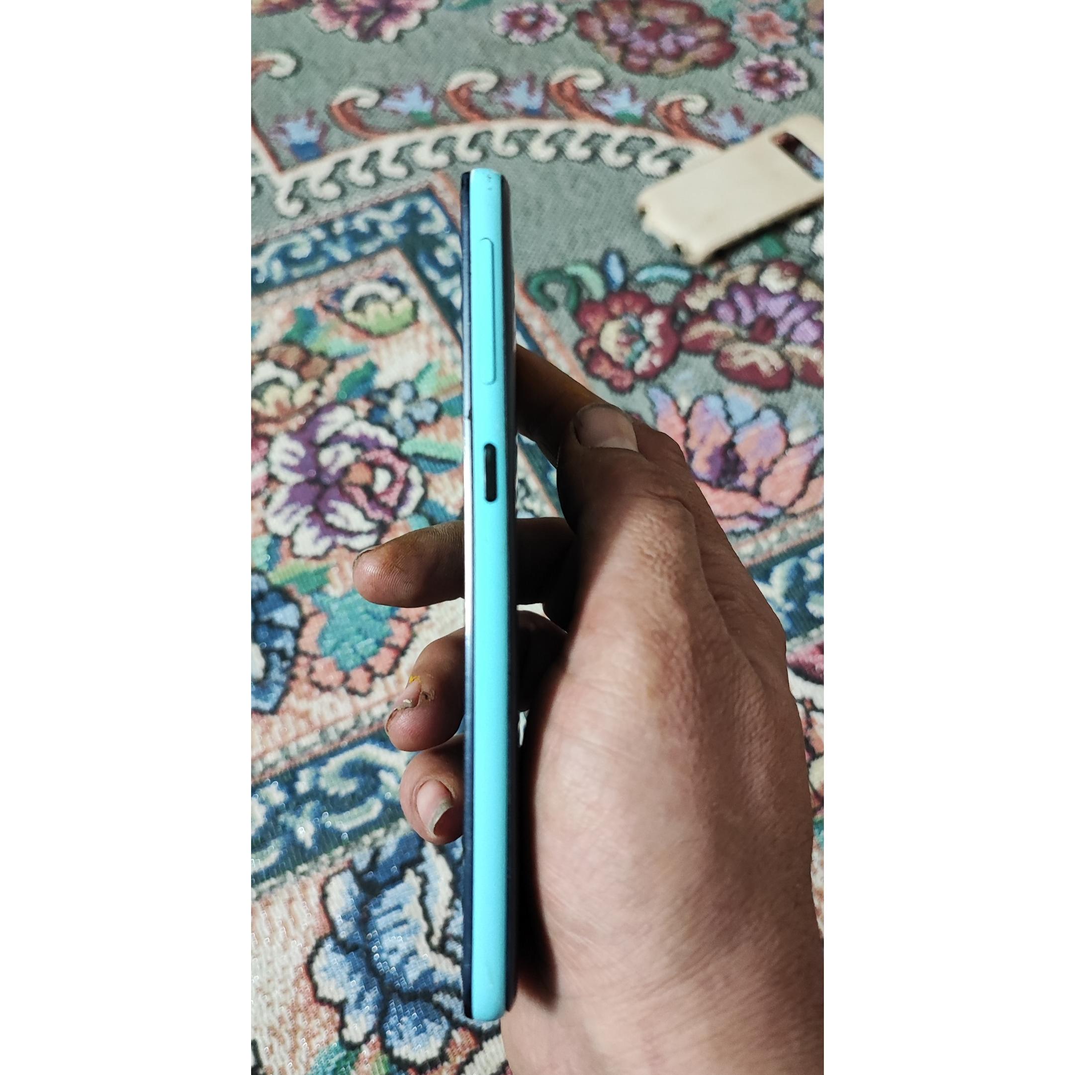 شبشه گوشی بدون ریکوچکترین خط و خش ،همبشه گلس ضخیم داشته . پشت گوشی خط و خش ریژ و کم  دارای دوربین پشت دارای فلاش و دوربین سلفی دارد  رنگ گوشی سورمه ای ،آبی ، باتری فابریکی و سالم ، فقط اختمالا کمی ضعیف شده یاشد ولی باد نکرده. دو سیم کارت است ، کارت حافظه جداگانه تا 64گیگ ساپورت میکند.صدای یلند استریو آنتن دهی عالی . اینترنت 2G و 3G ساپورت می کند.. کارتن و دفترچه اش را نمی دونم کجا گذاشتم .