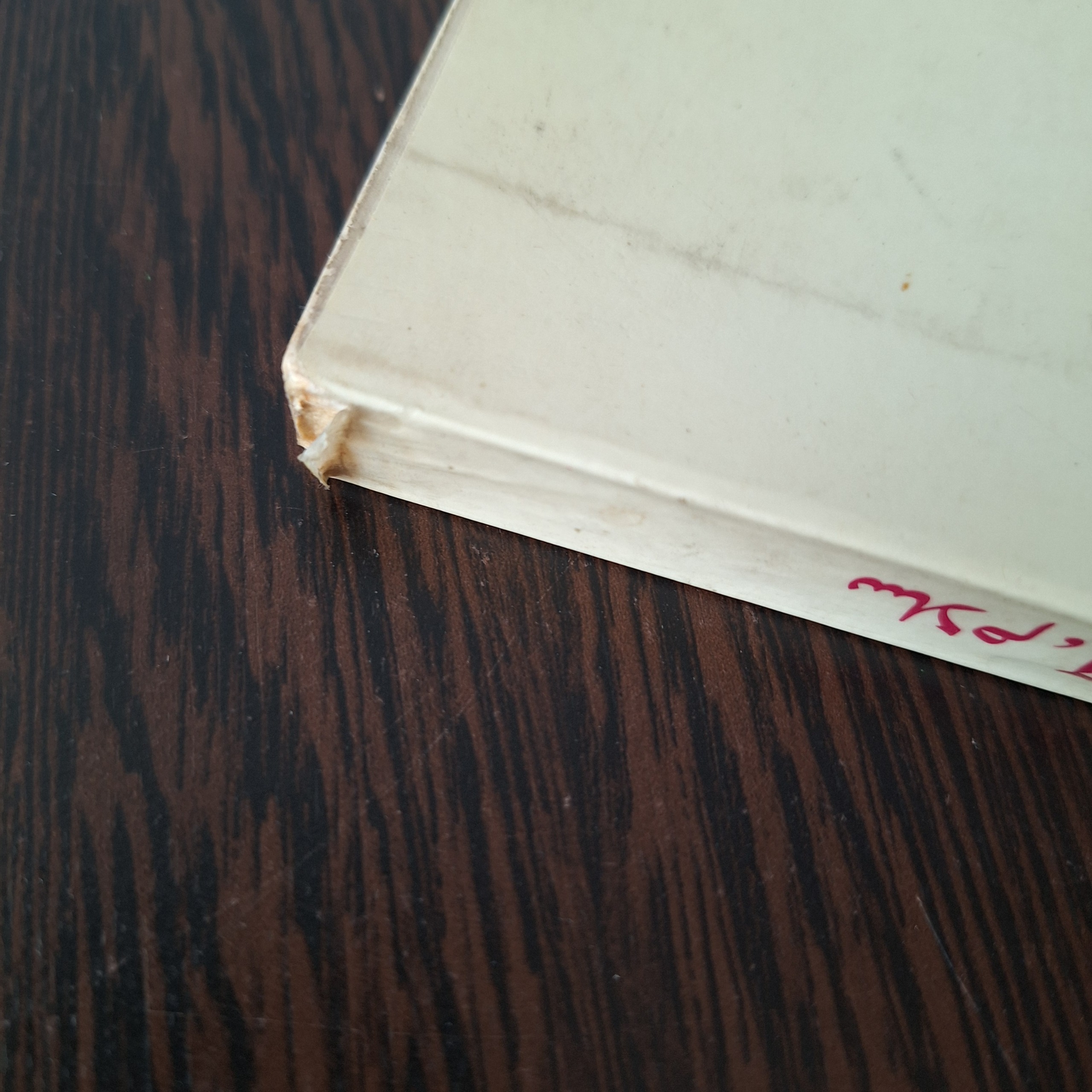 صفحه اول کتاب به جلد چسبیده شده، ابتدای کتاب دستنوشته دارد و پایان کتاب در صفحه سفید در پاشید شده است