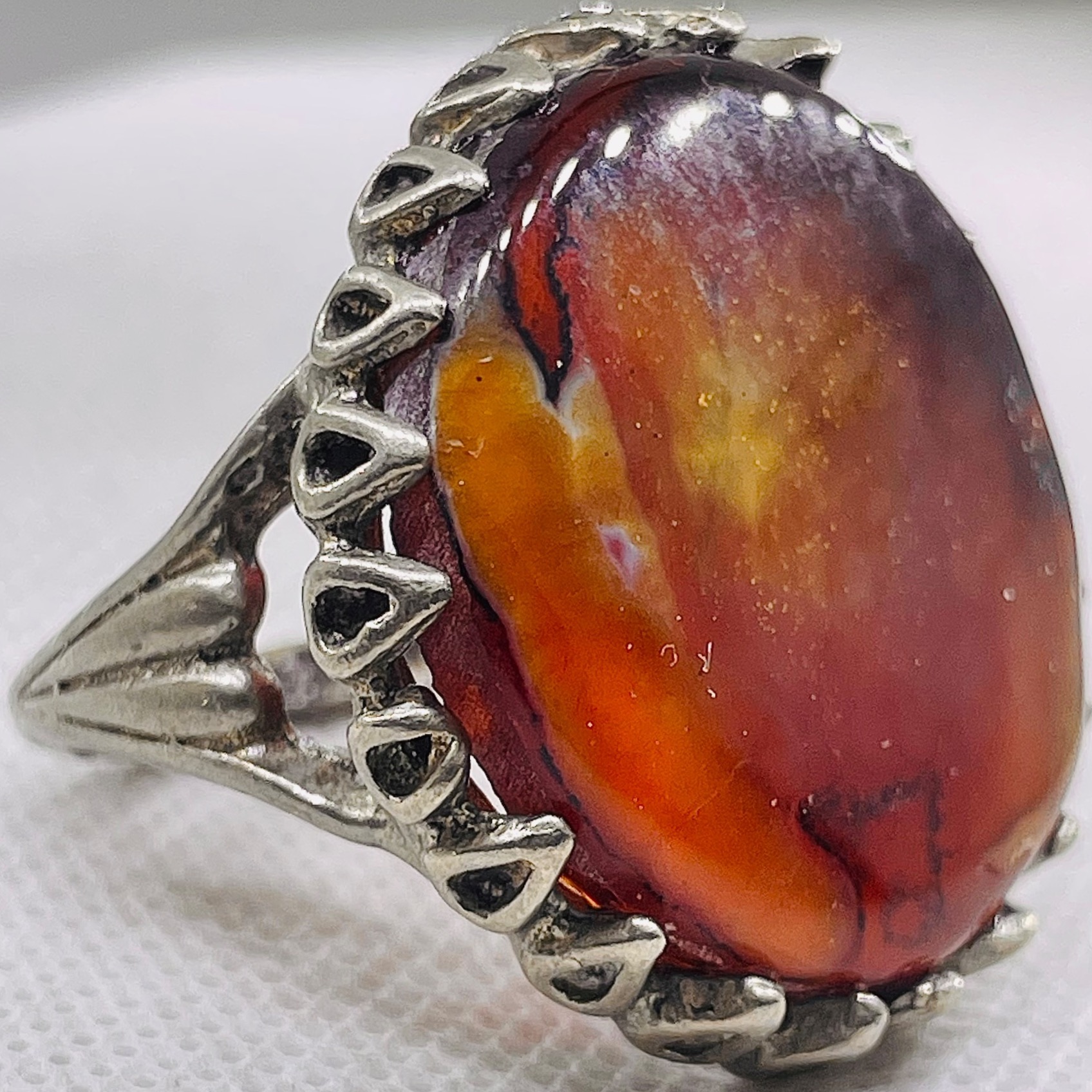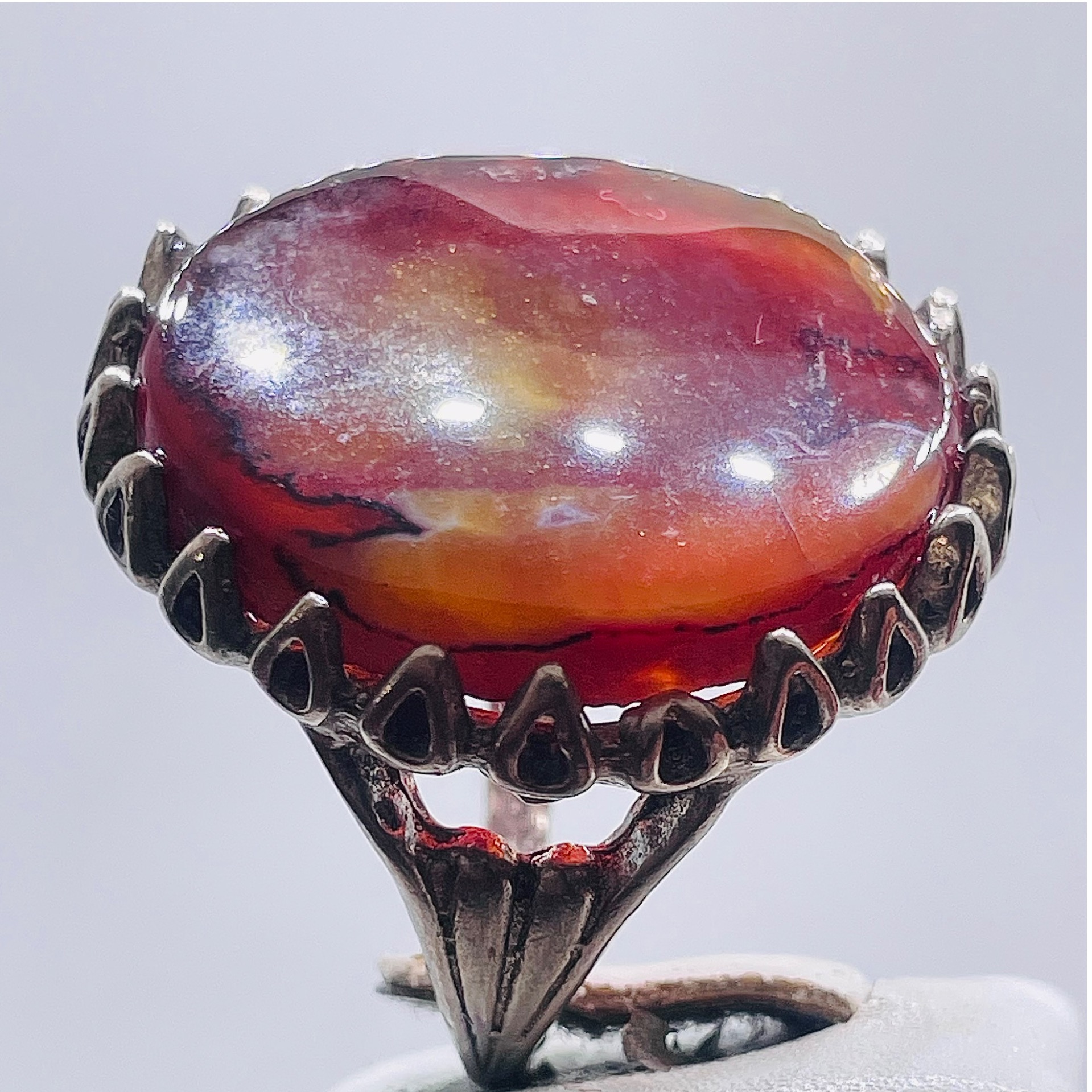 انگشتر استثنایی جزع خرمایی یمن با طبع ارغوانی صفو
