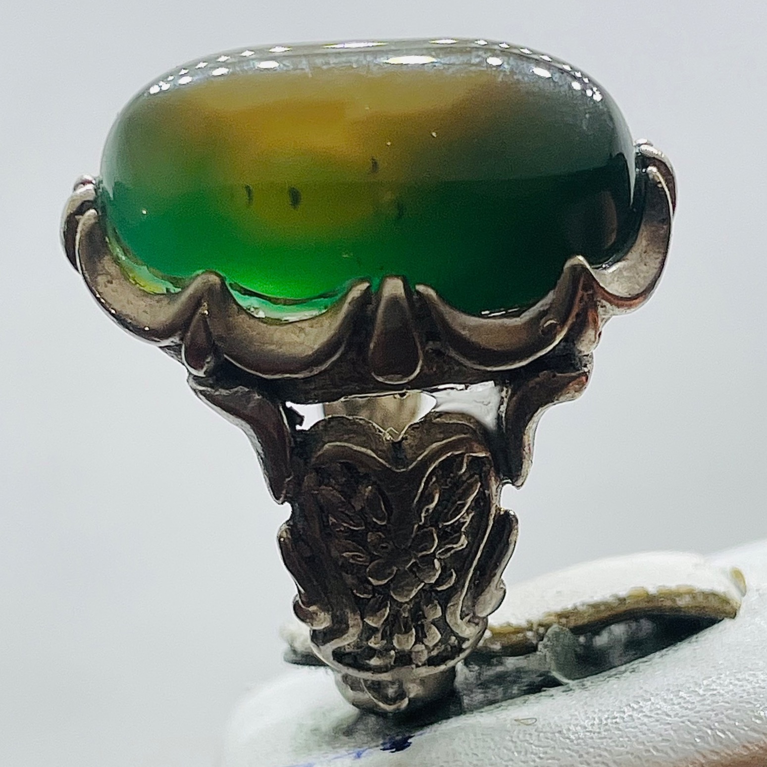 انگشتر شاهکار ابدار عقیق کلاهدار بسیار زیبا چندرگه