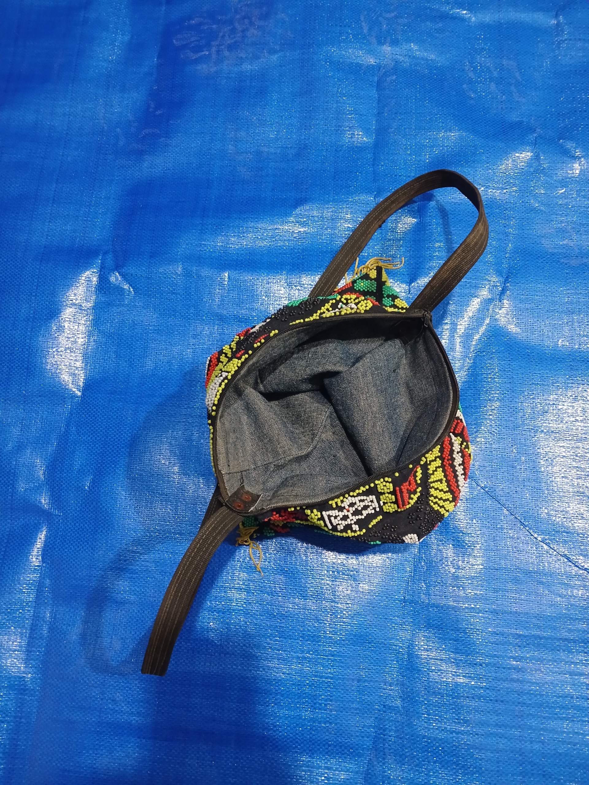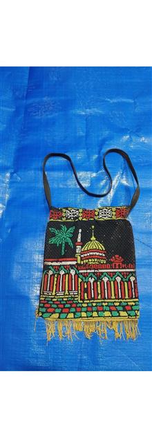 زنبیل خرید قدیمی مال زمان پهلوی سالم و بدون ایراد قابل استفاده کلکسیونی ساخت کشور خارجی منجوق ها دوخته نشده بر اثر حرارت رو پارچه زدن مال زمان پهلوی،تمیز و مرتب تک.