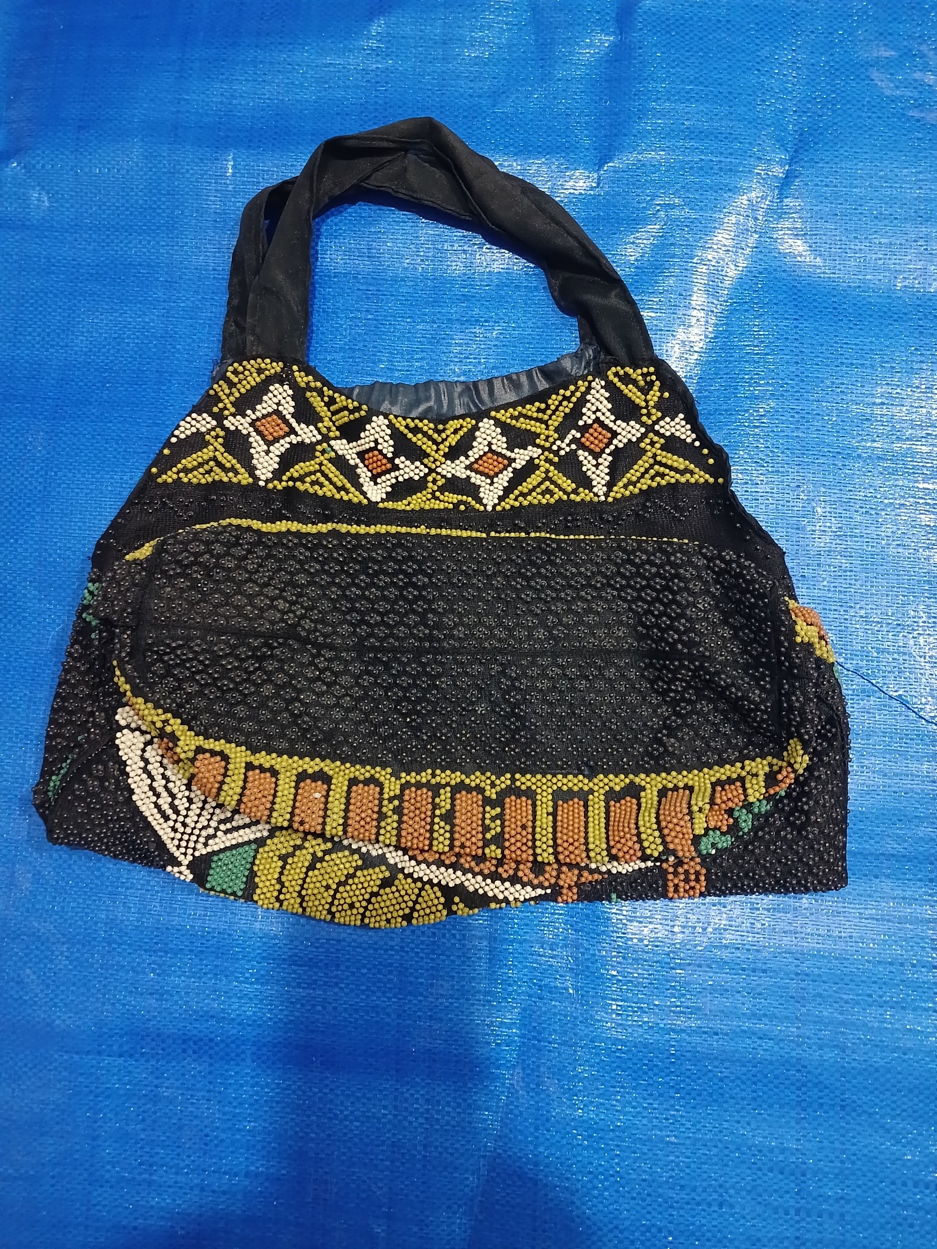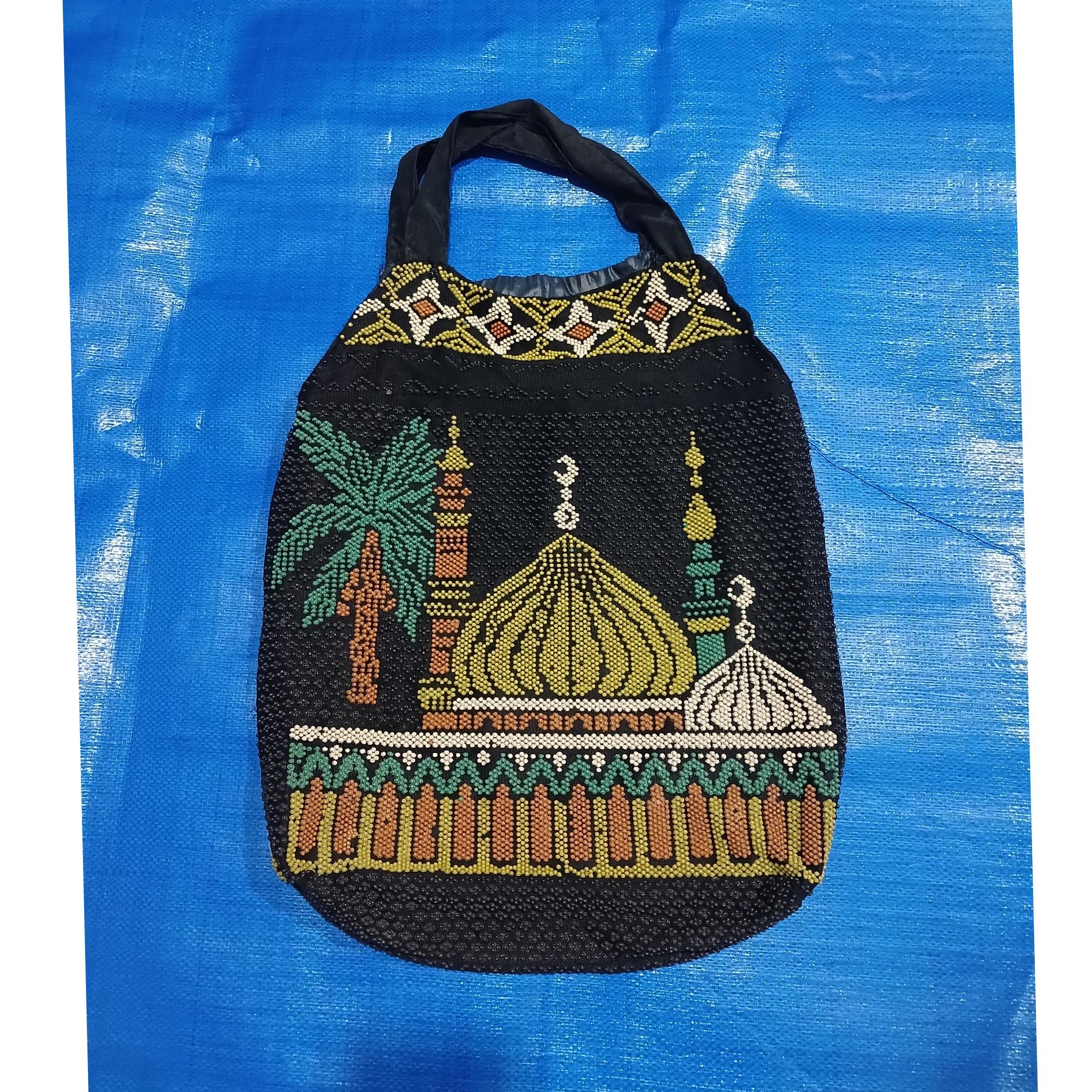 زنبیل خرید قدیمی سالم و بدون ایراد قابل استفاده کلکسیونی اندازه طبق شکل مال زمان پهلوی تمیز مونده مرتب ساخت کشور خارجی منجوق ها دوخته نشدن بروش حرارت رو پارچه نصب کردن.