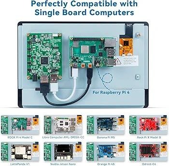 دارای ورودی HDMI با وضوح 1280 در 800 پیکسل از نوع IPS LCD برای RPi