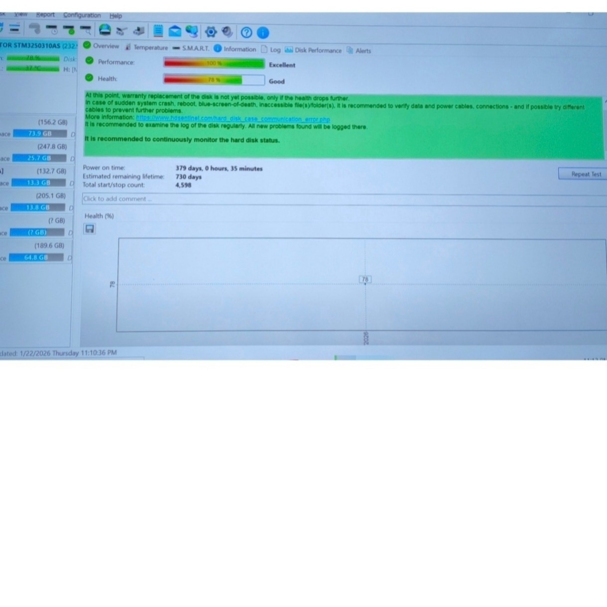 هارد طبق تصاویر 78 درصد سلامت داره