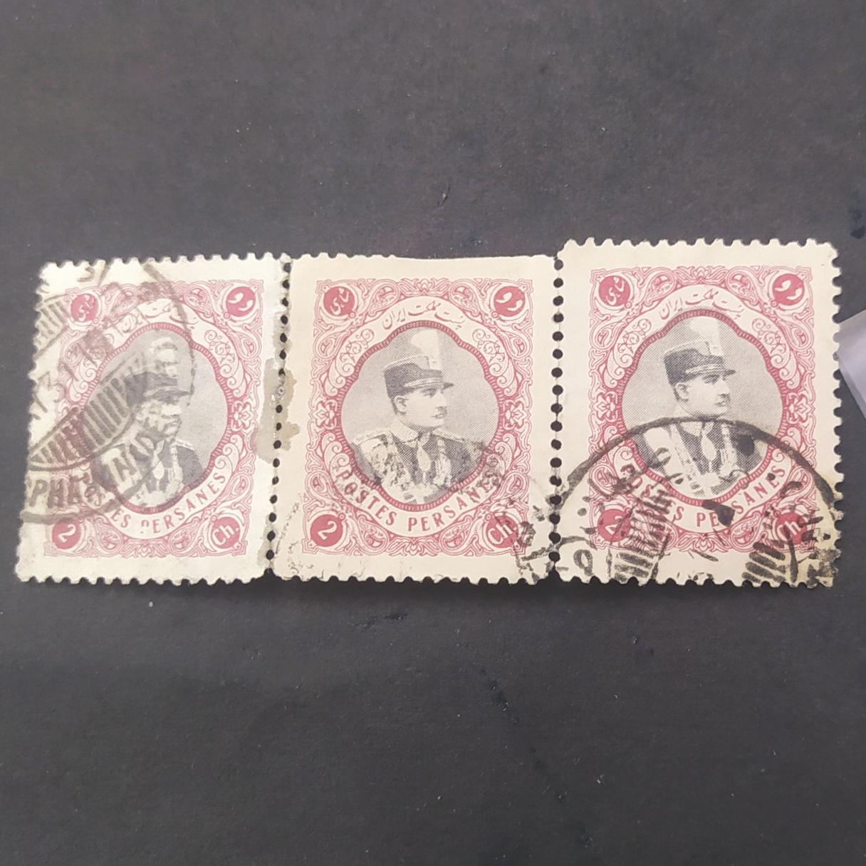 بند سه تایی جزئی تعمیر شده است. تمبر رضا شاه کبیر