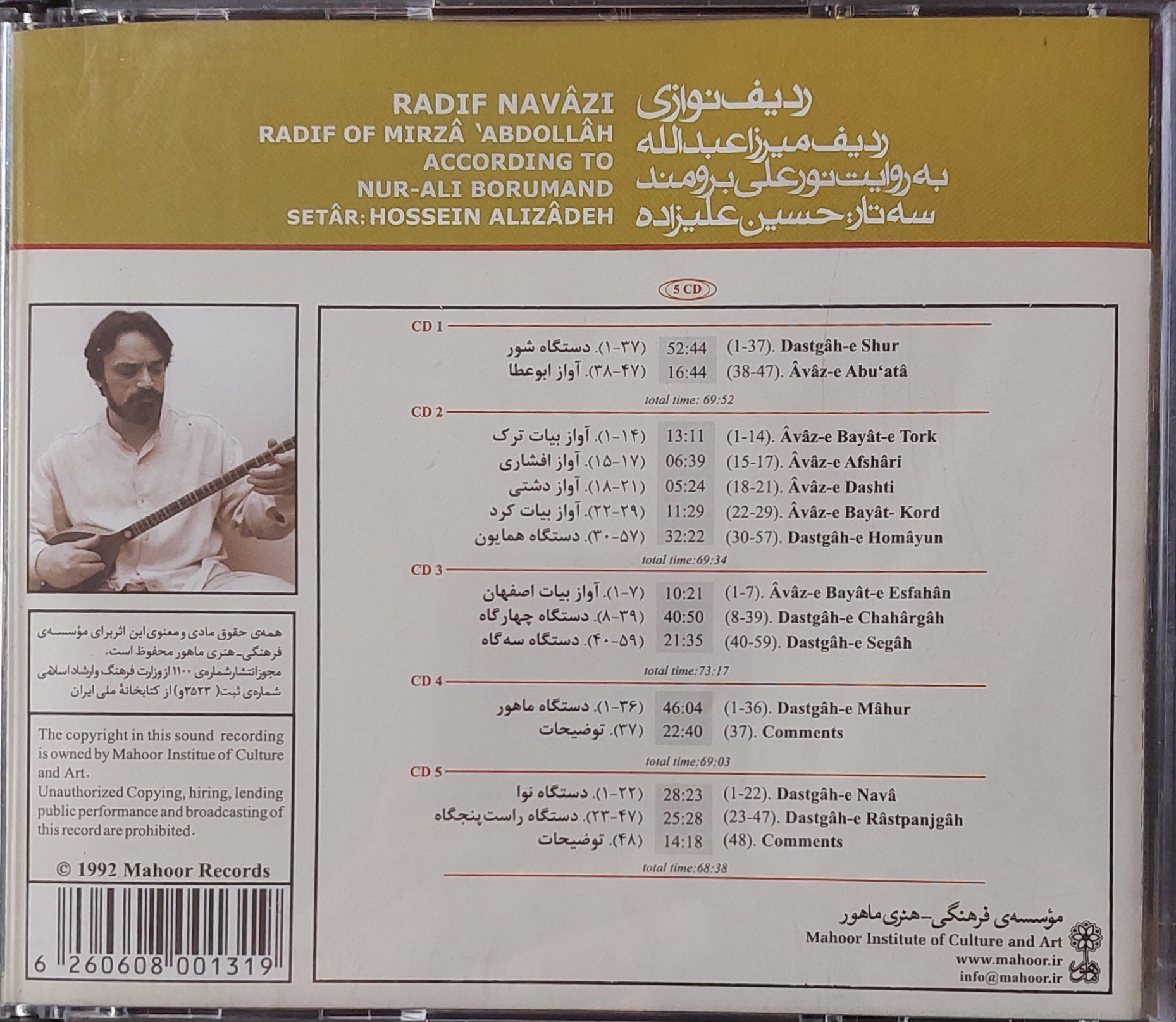 سی دی ردیف نوازی میرزاعبدالله سه تا حسین علیزاده