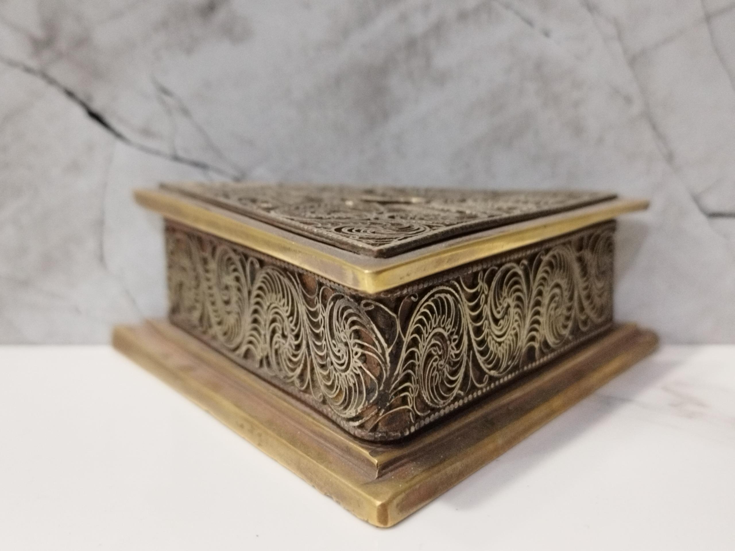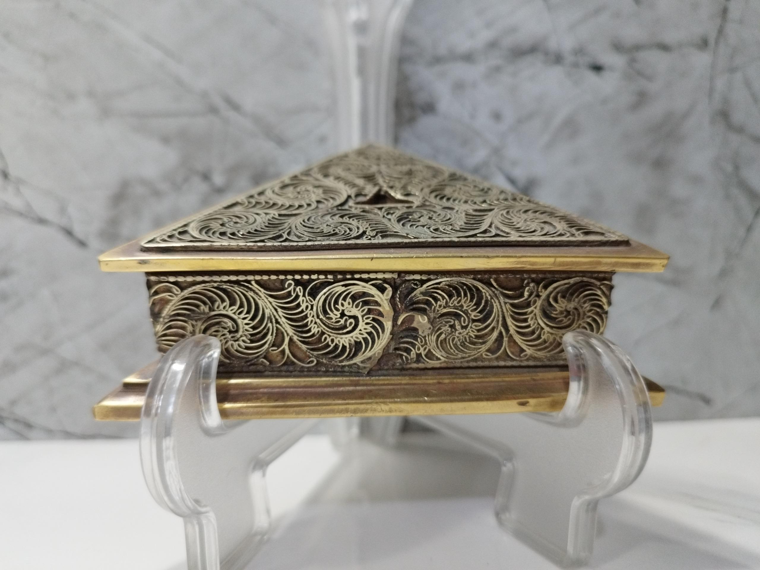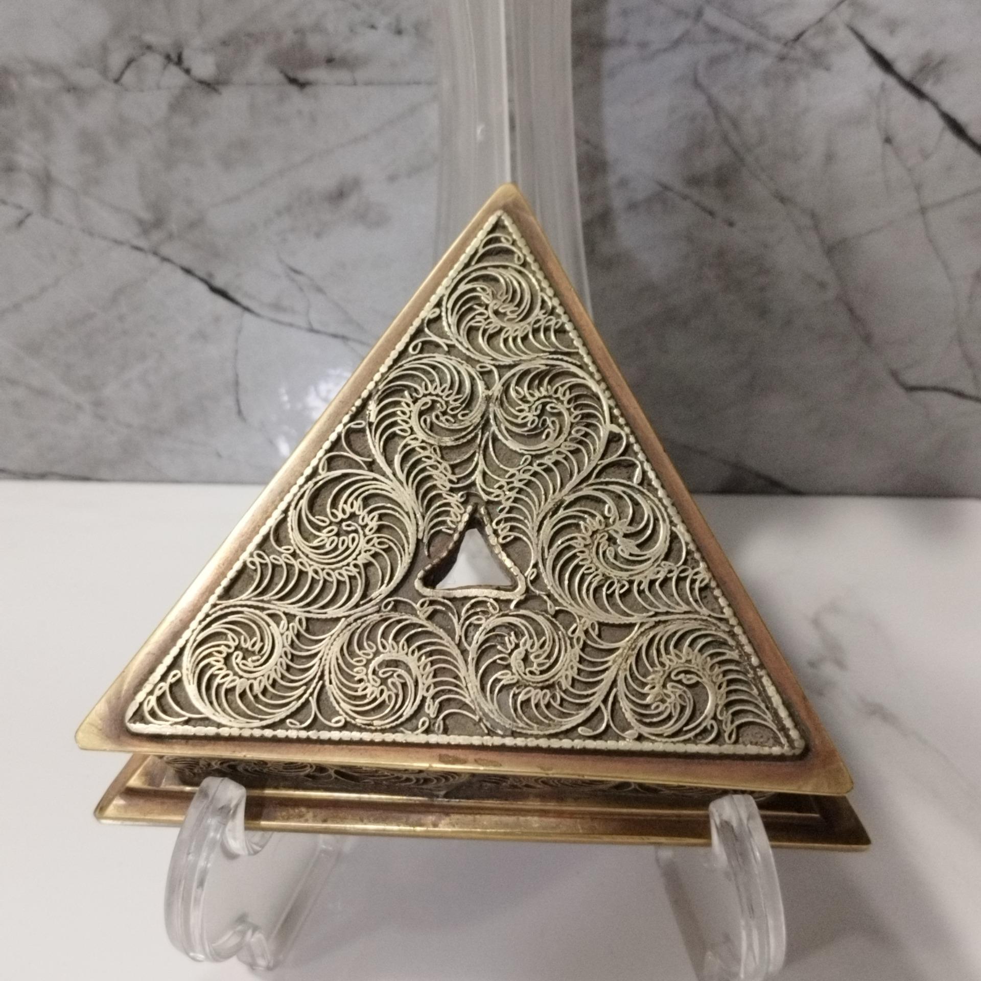 پایه چاقو سه پری برنجی تماما ملیله کاری شده قدیمی