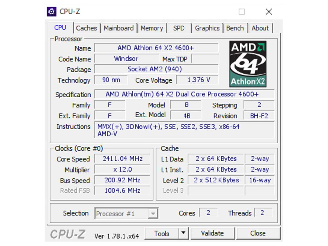 مشخصات فنی پردازنده AMD Athlon 64 X2 4600