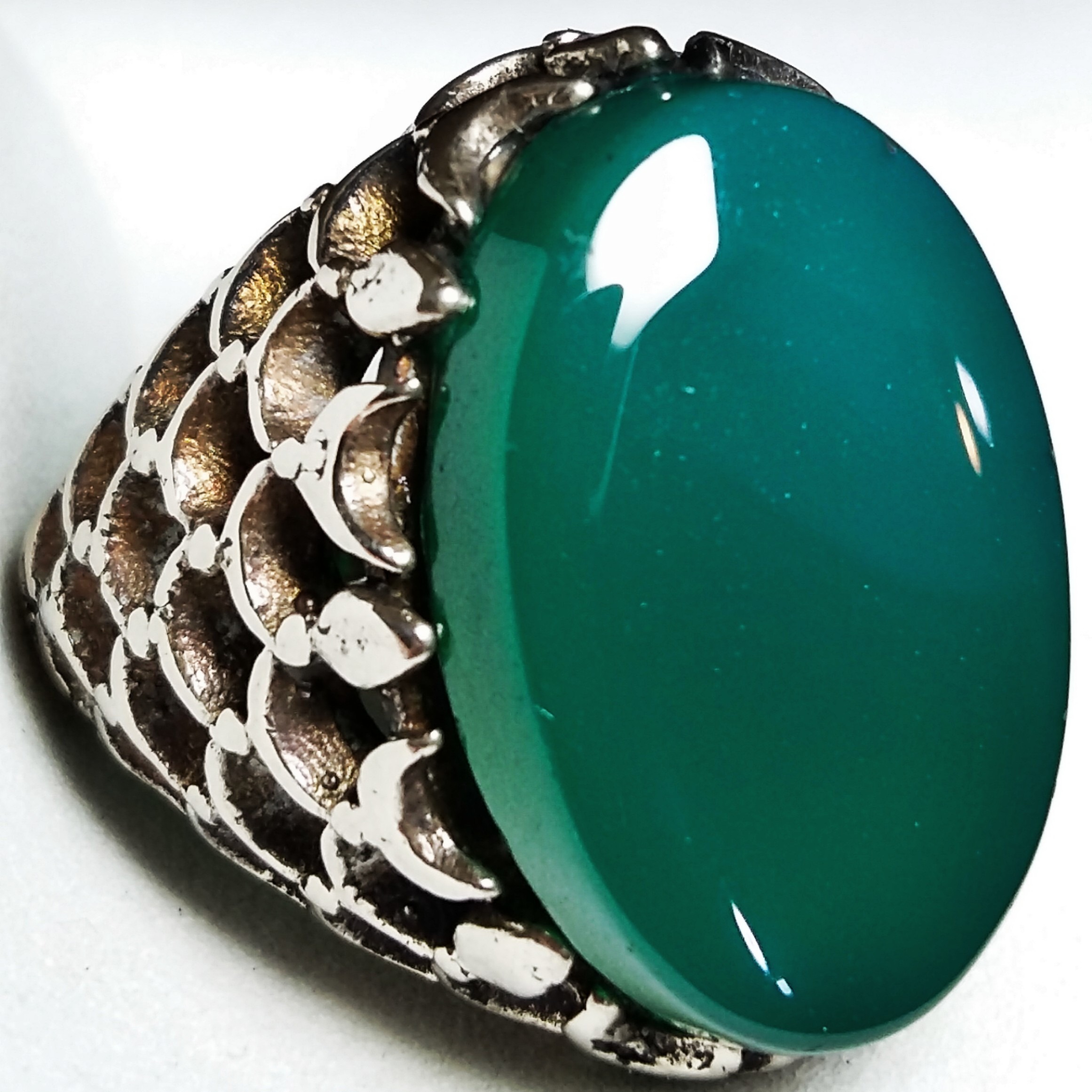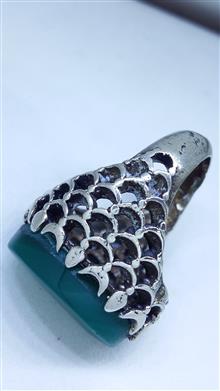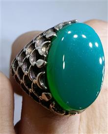 انگشتر پولکی عقیق سبز معدنی کمیاب اصیل