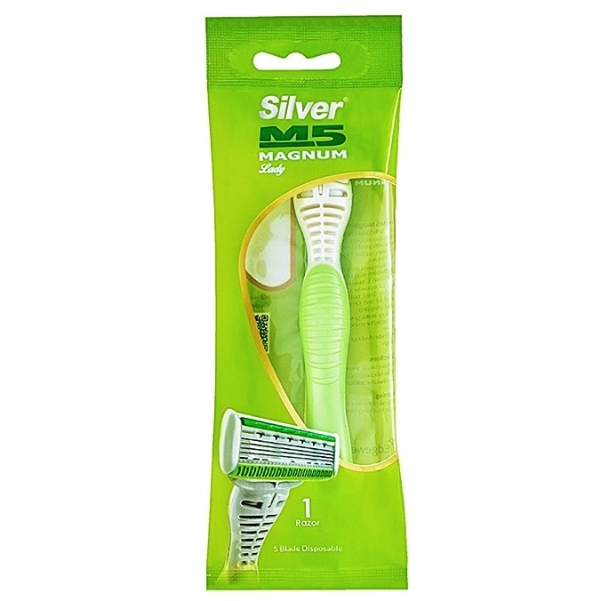 خودتراش سیلور مگنوم زنانه یک خودتراش 5 لبه با تیغههای تیتانیومی است که برای اصلاحی دقیق و بدون حساسیت طراحی شده است. این خودتراش دارای یک نوار صابونی حاوی ویتامین E و آلوئه ورا است که به لغزندگی تیغ و نرمی پوست کمک میکند.