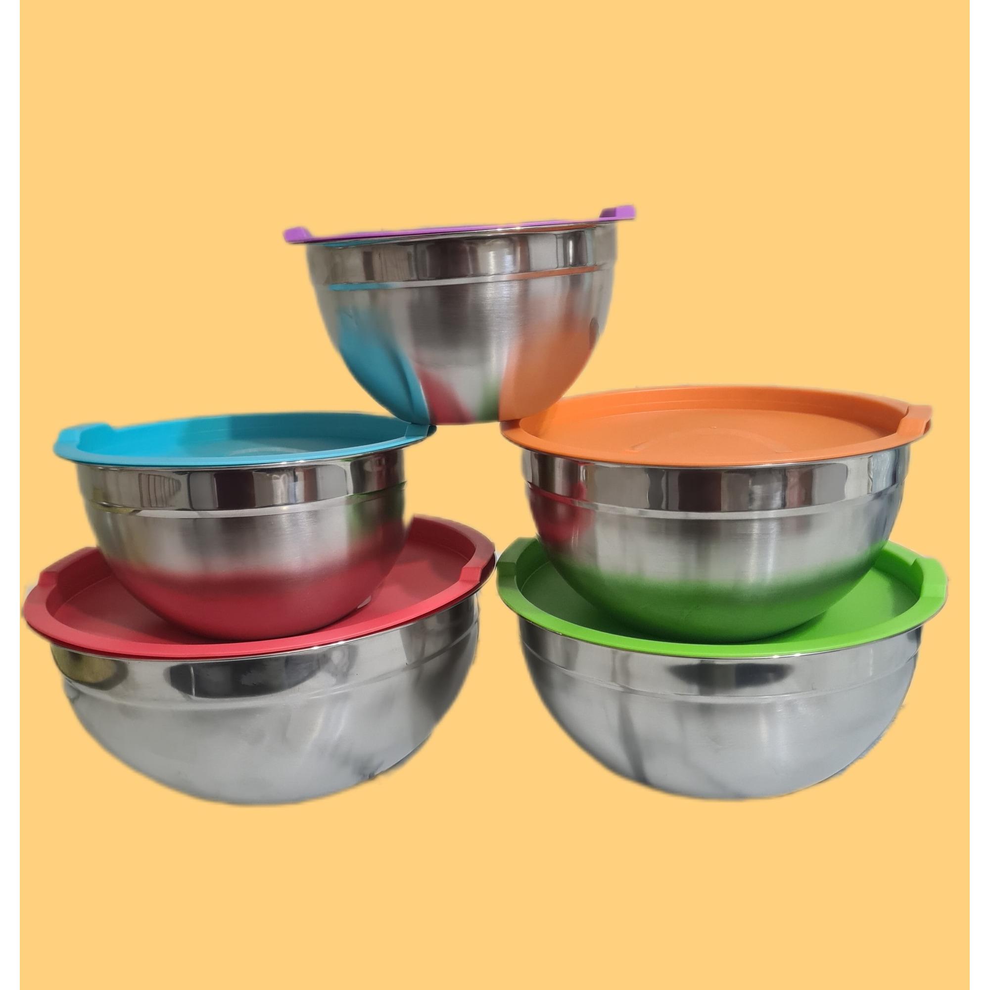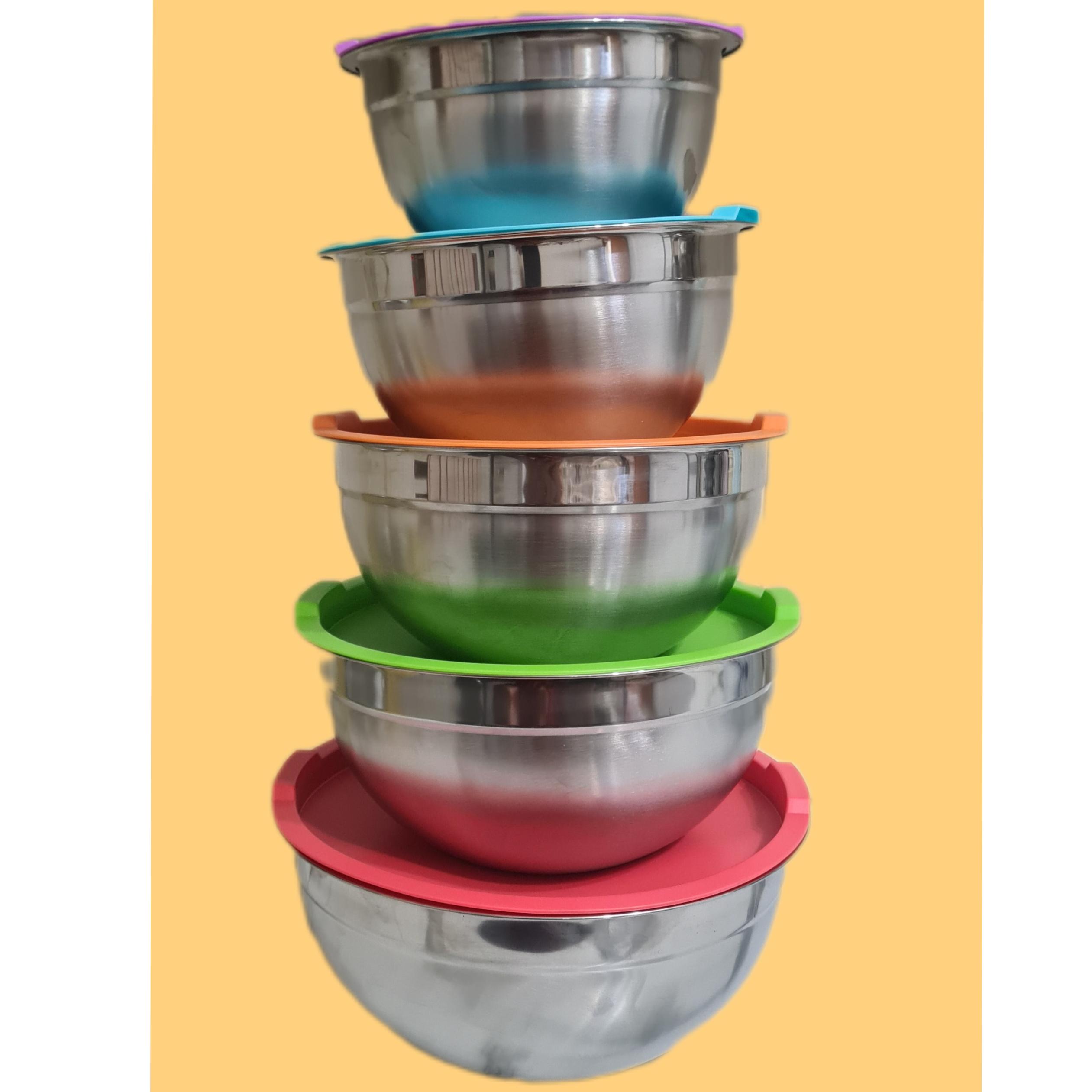 ست لگن استیل درب رنگی 5 عددی