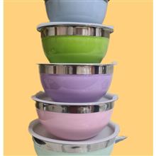 ست کاسه سالاد رنگی استیل یونیک 5 تکه درب دار