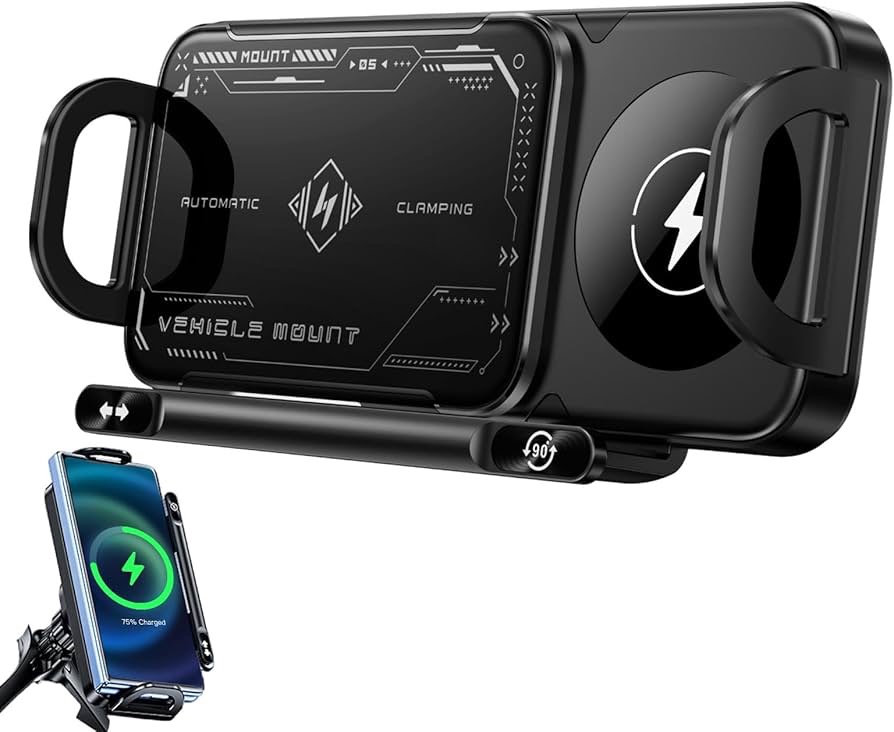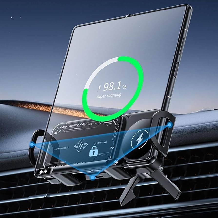 پایه نگهدارنده/پد تلفن همراه هوشمند 2024، شارژر بیسیم خودرو، پایه نگهدارنده گوشی با قابلیت شارژ سریع، پایه چرخان خودکار 2 در 1، پایه نگهدارنده تلفن همراه