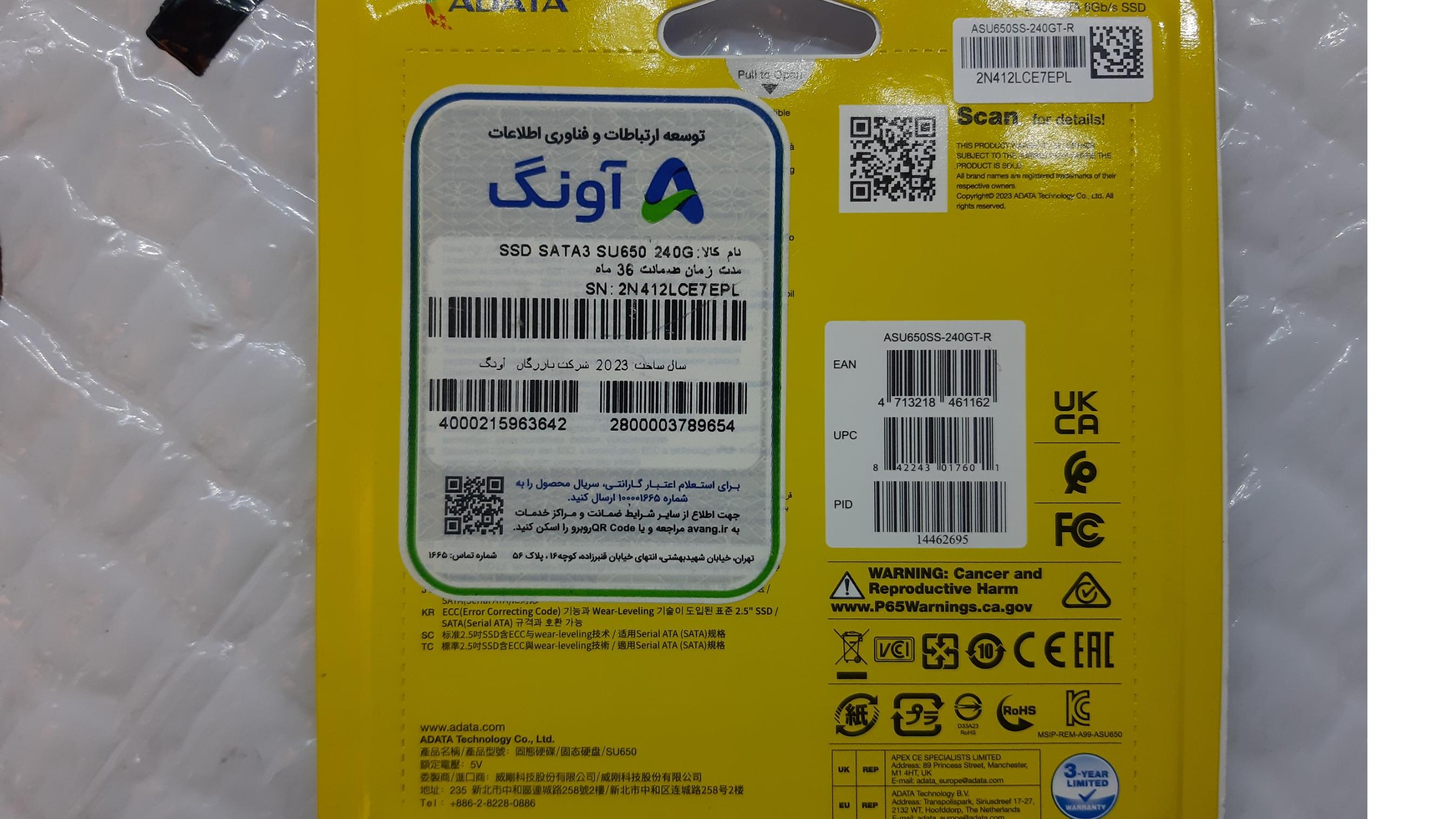 SSD ADATA SU650 BLUE 240GB آکبندوارانتی معتبر