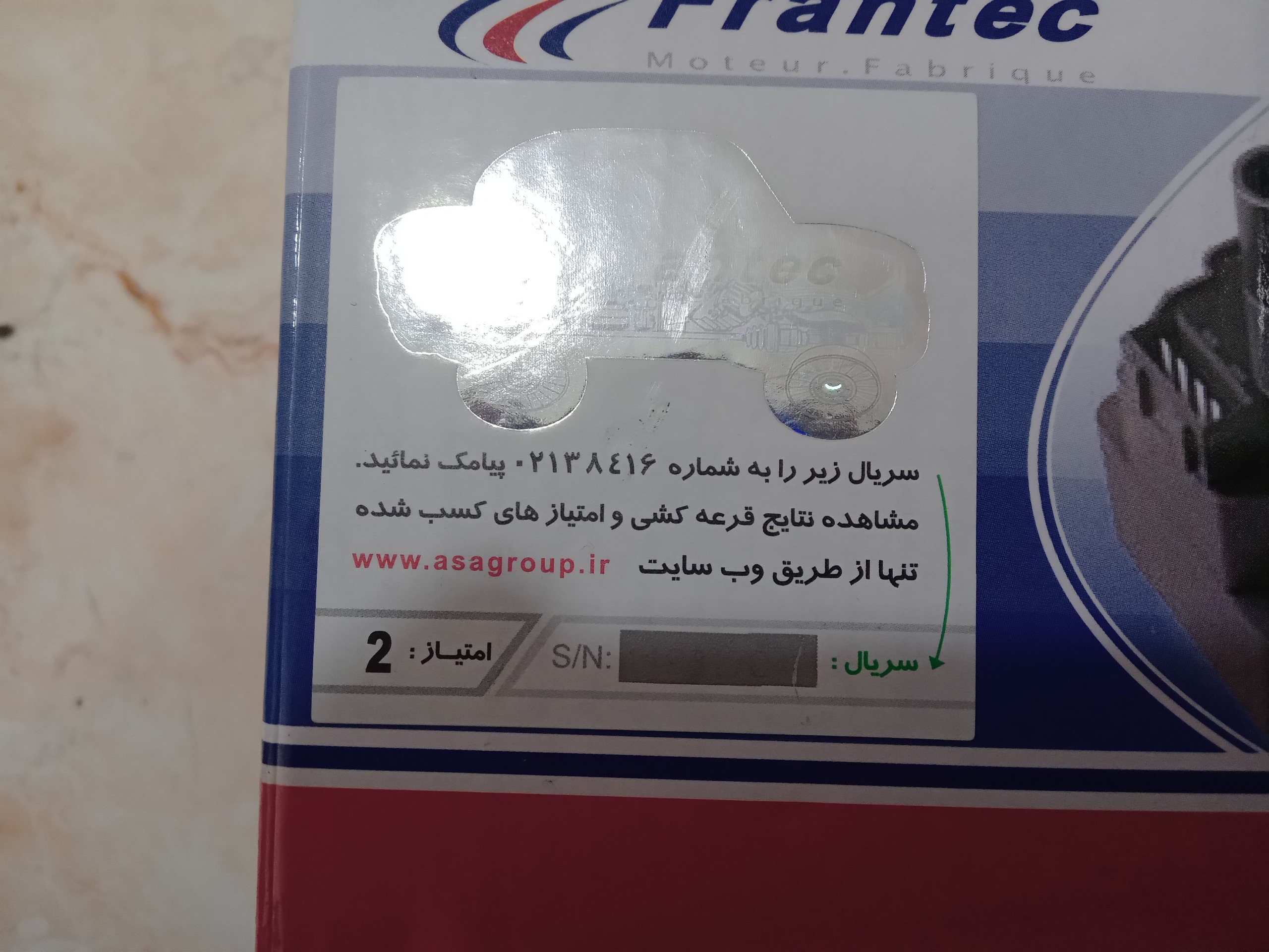 سریالش هم مخدوش نشده میتونید بتراشید و  مسیج کنید تو قرعه کشی شرکت کنیدد