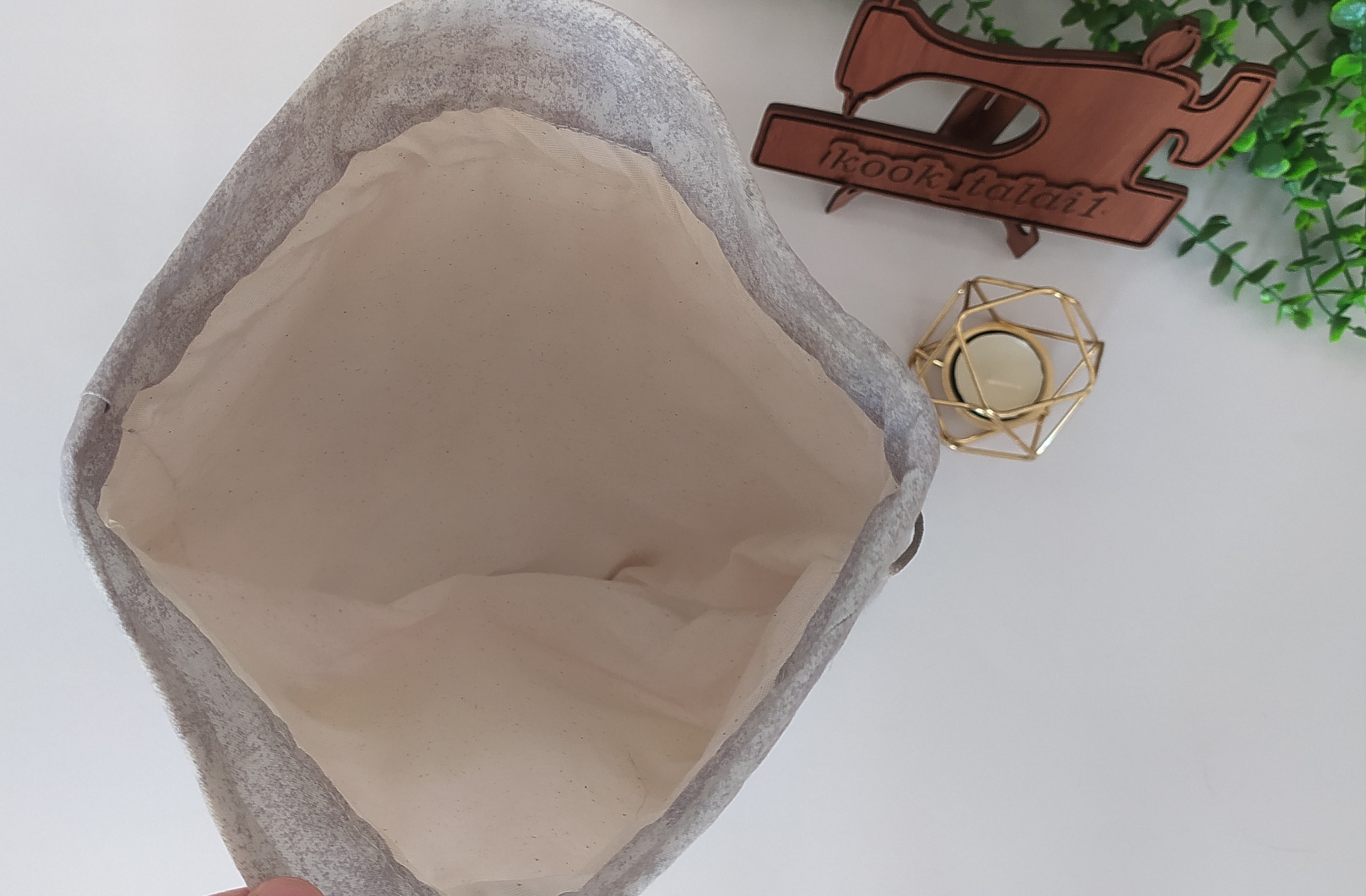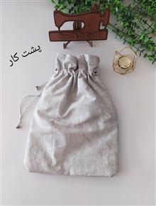 بالای کیسه 4تا پرچ حلقه پرچ شده که راحتر نخ قیطان کشیده بشه ودرب اون بسته بشه، رنگ پارچه طوسی روشنه�