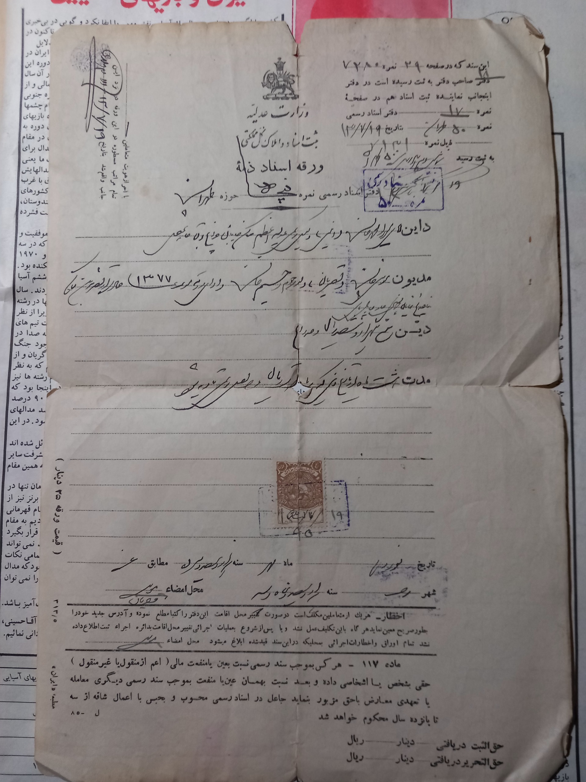 ورقه اسناد ذمه 1313