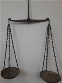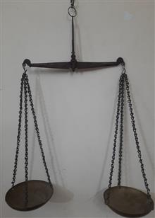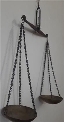 ترازوی سنگین وجوندار زرگری دست ساز شاهنگ فولادی وکفه ها برنجی بسیار دقیق وانتیک