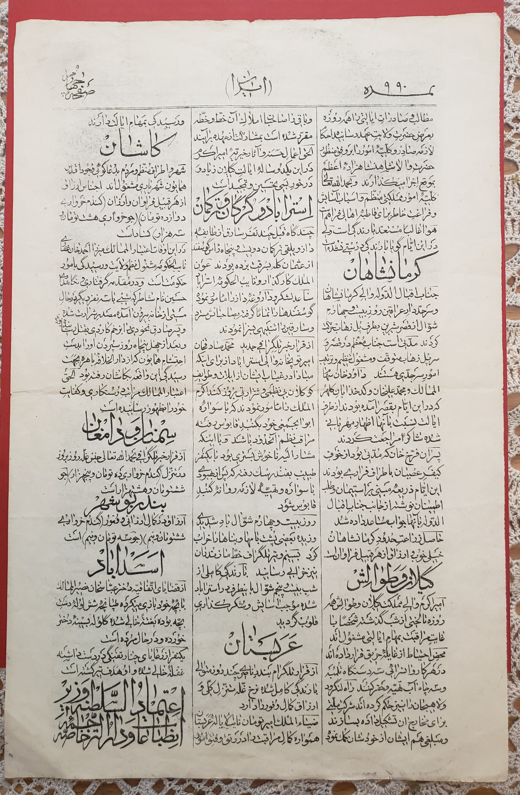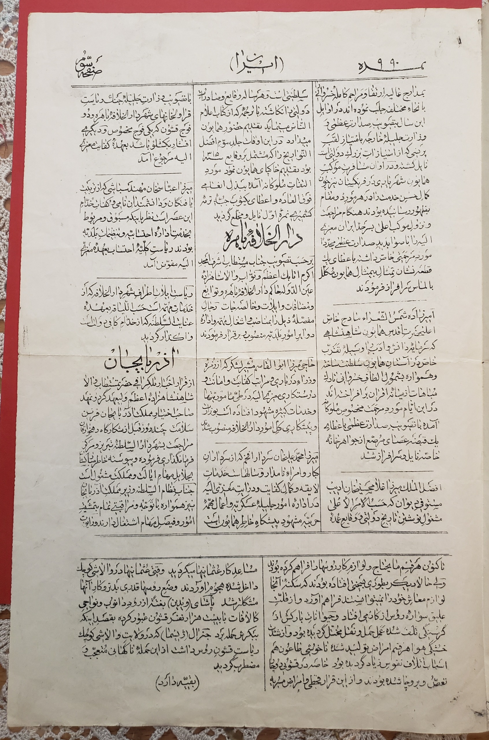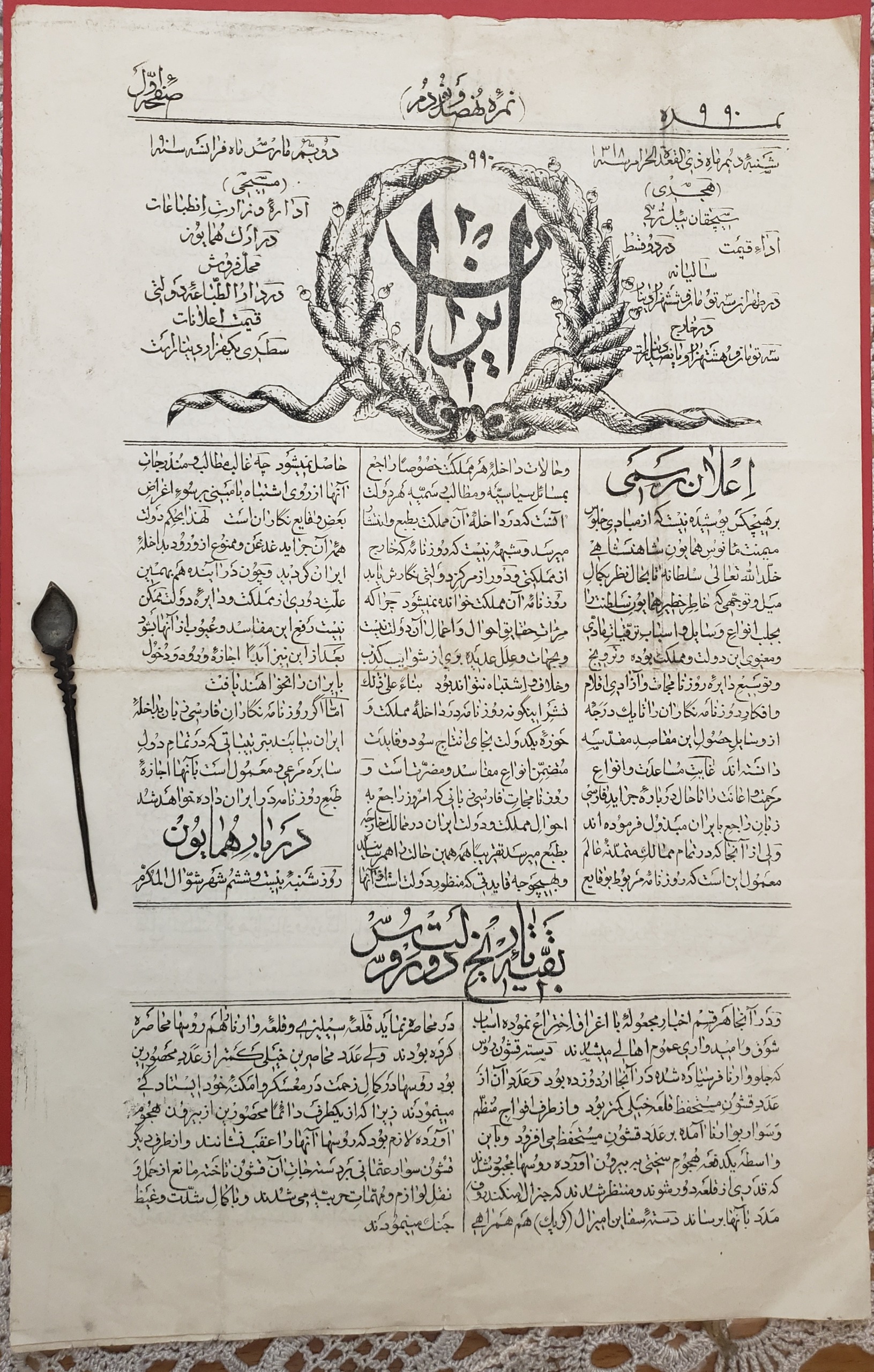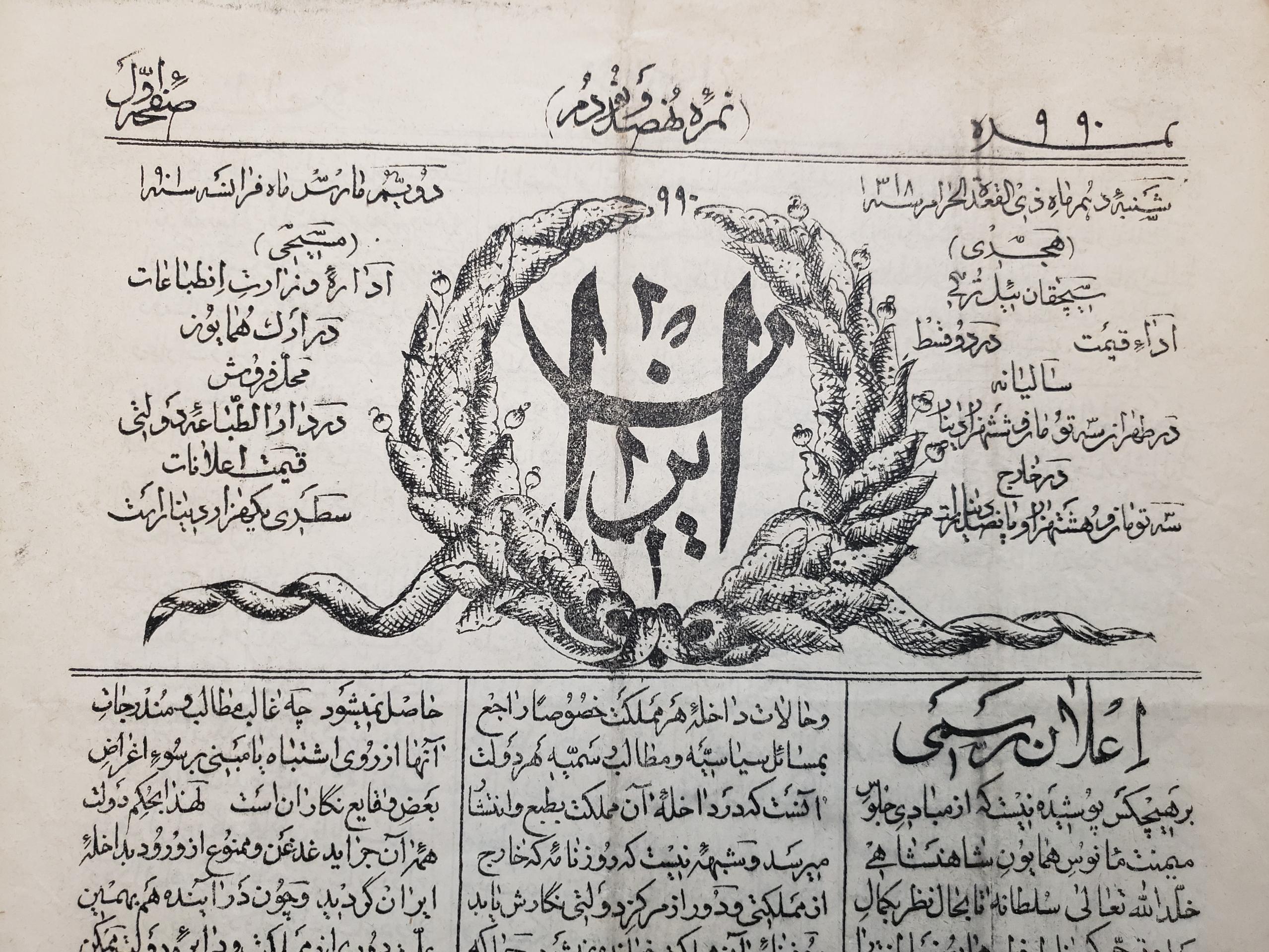 روزنامه نایاب قاجاری ایران 1318 قمری، 4 صفحه
