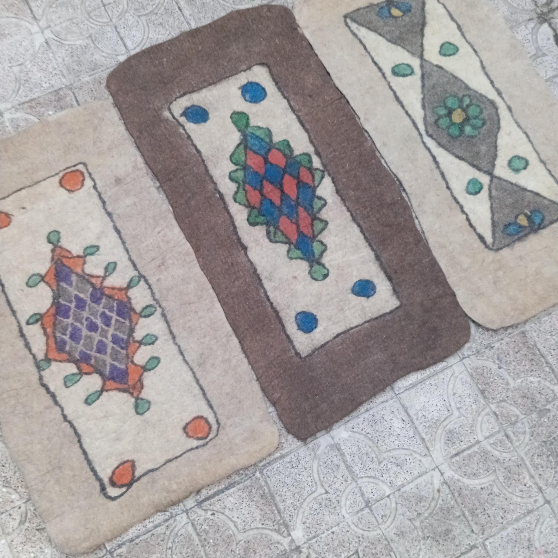 خدمت دوستان عزیز نمد طبیعی دست ساز از پشم گوسفند رنگ های «قهوه ای وطوسی. کرمی»