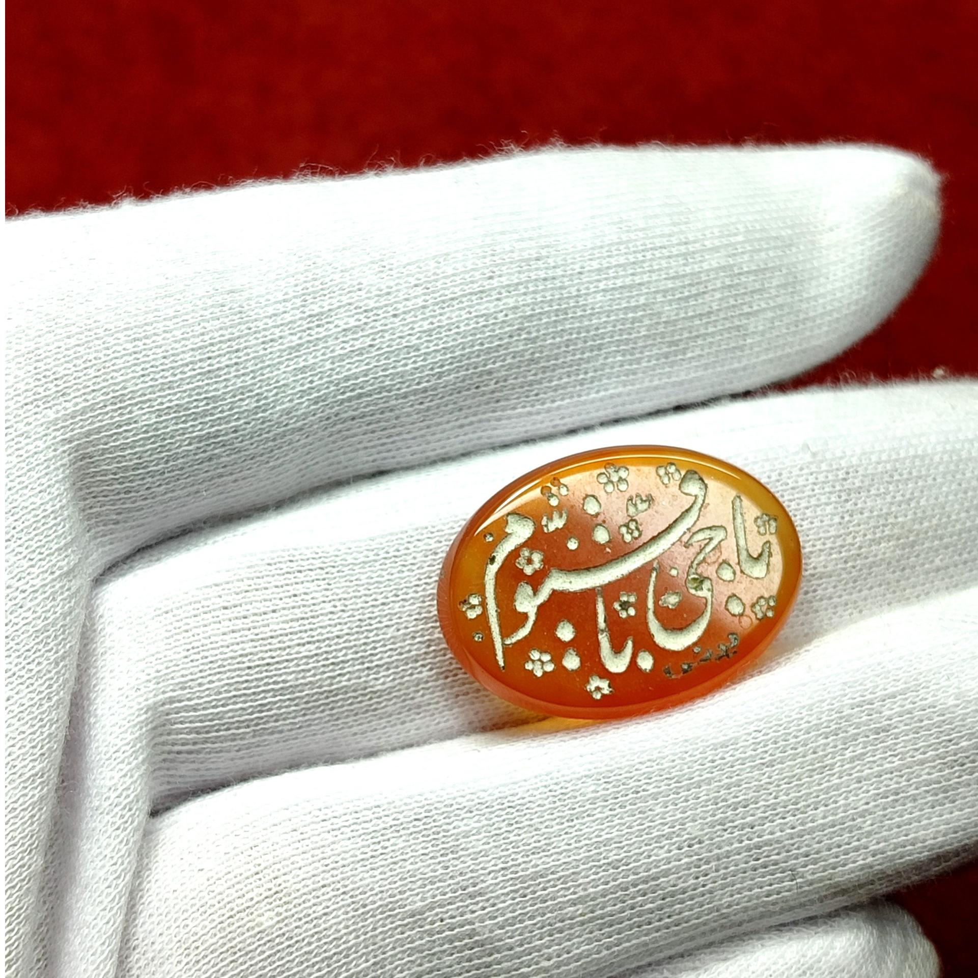 عقیق پرتقالی با حکاکی محشر استاد یونس