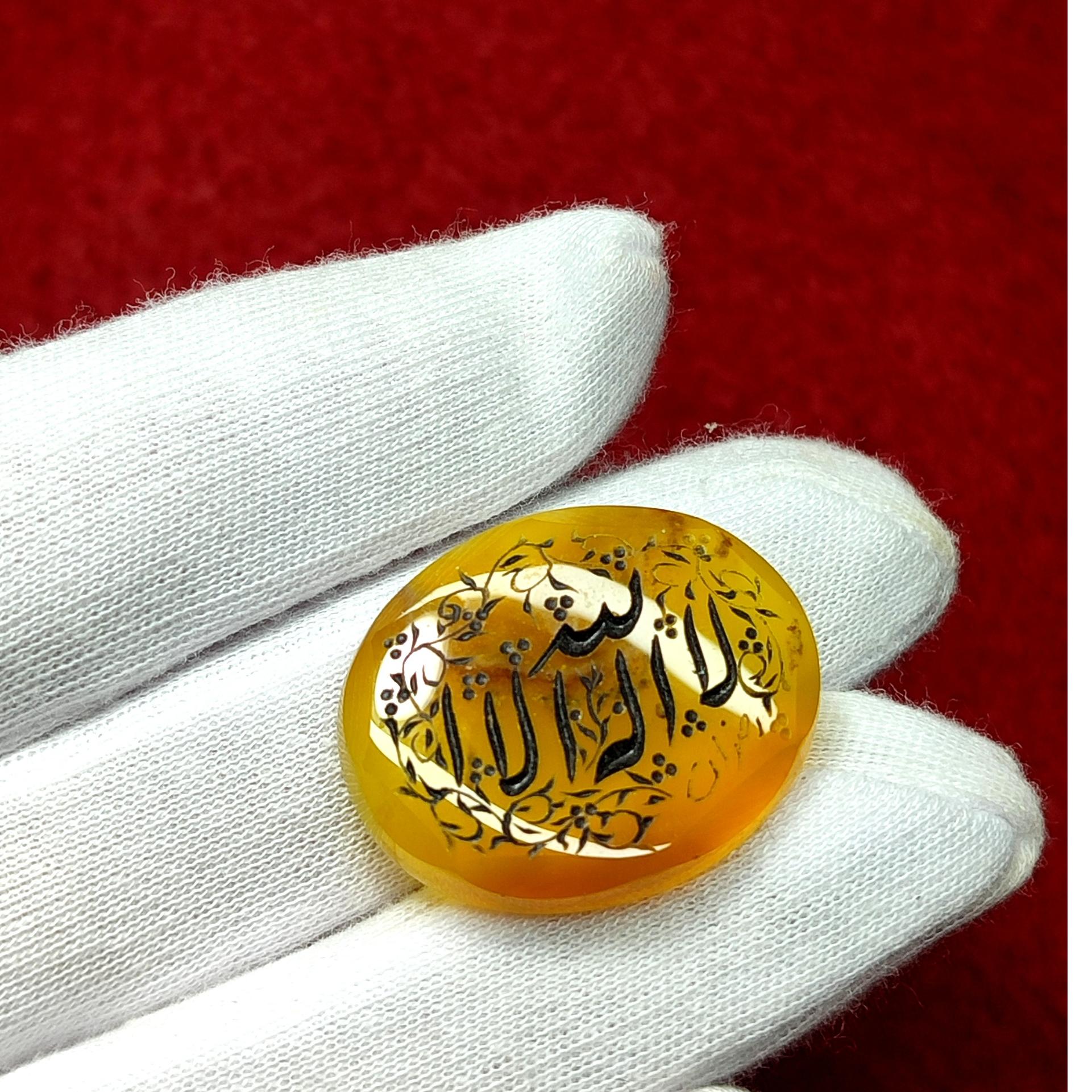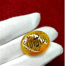 عقیق زرد یمنی خطی و تراش دورسنگ با حکاکی رضوان
