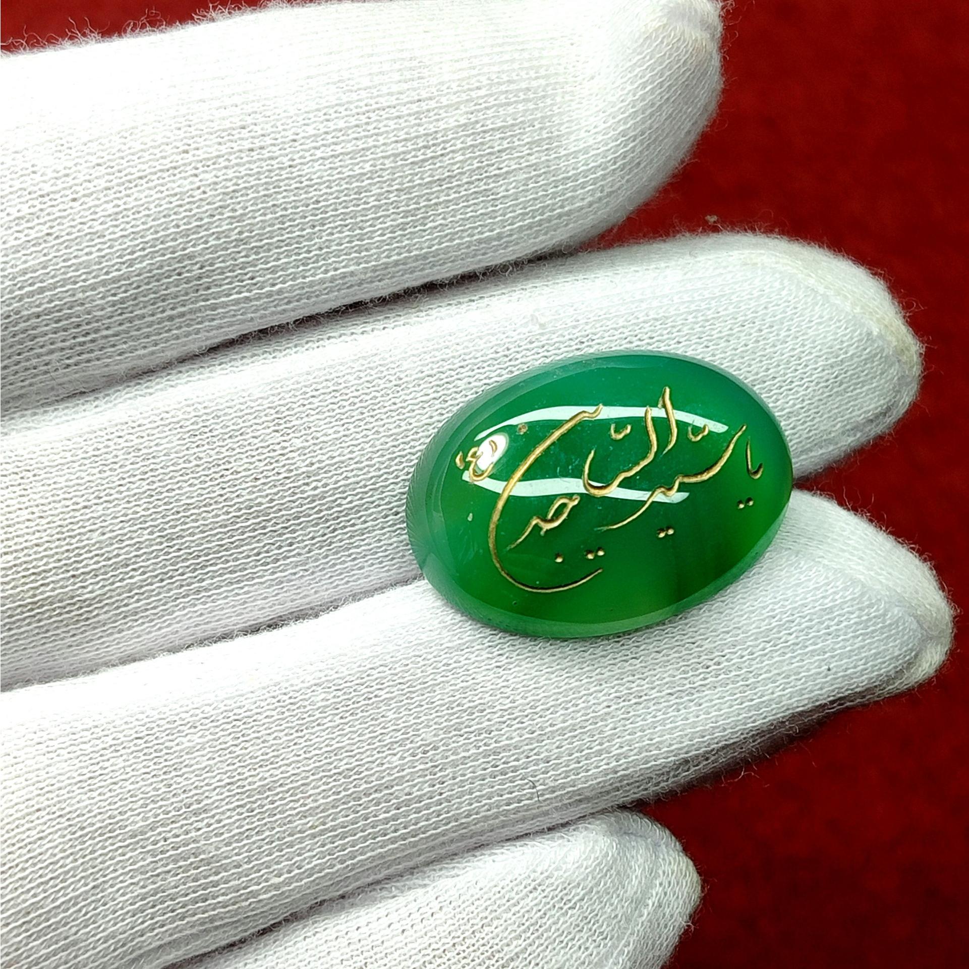عقیق سبز اندونزی فاخر با حکاکی استاد خسروی