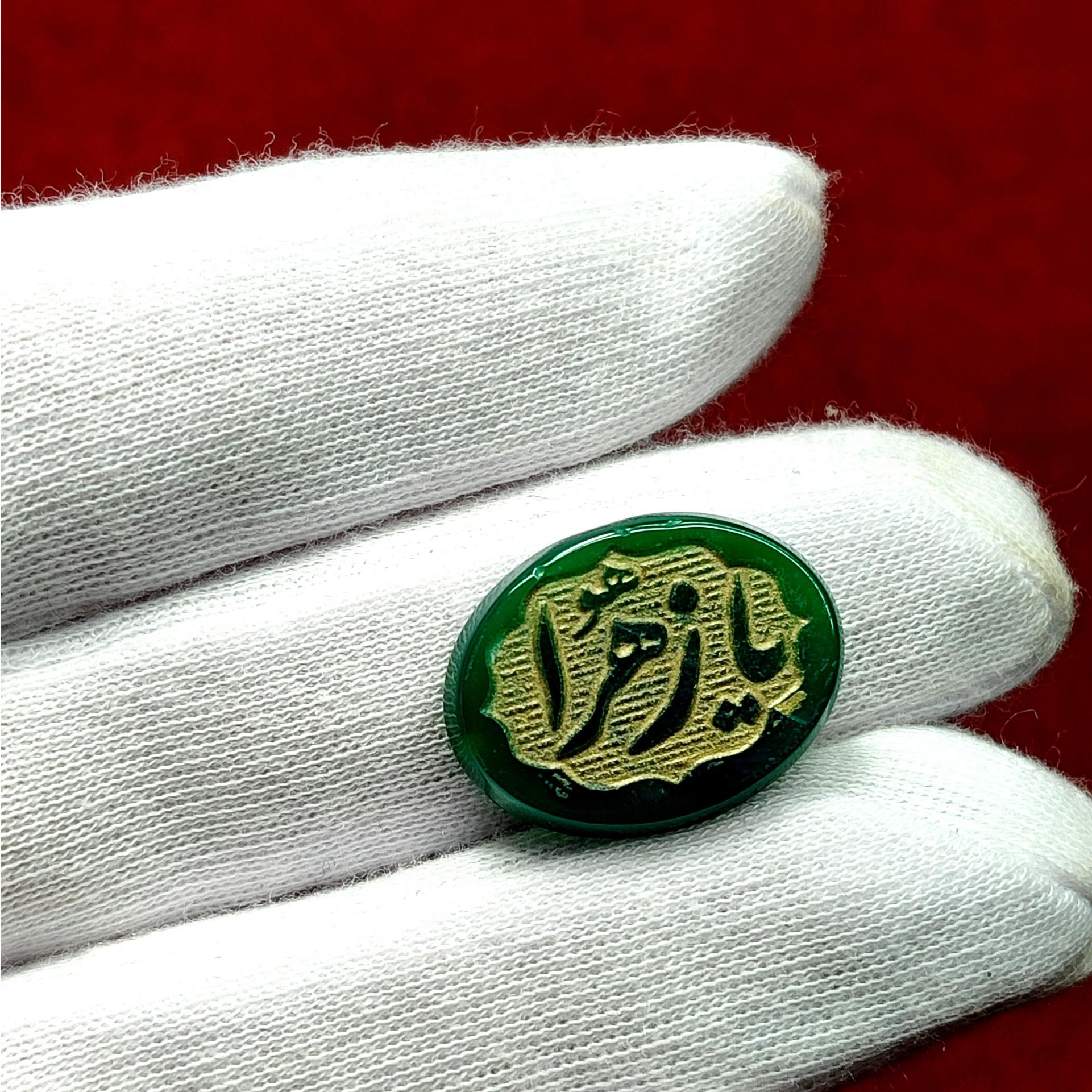 عقیق سبز خطی اندونزی با حکاکی کوپال فاخر