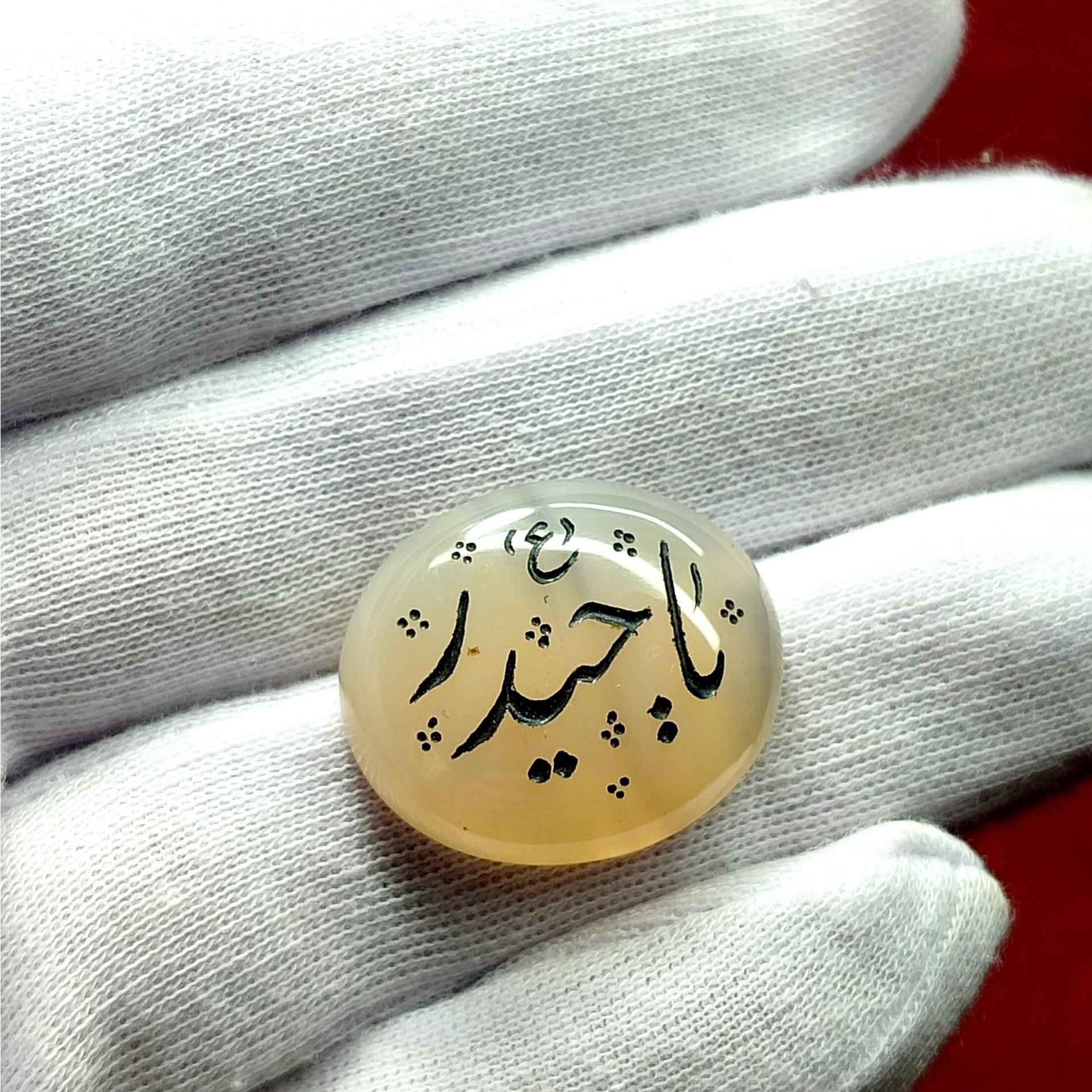 عقیق نباتی خطی با حکاکی استاد خسروی